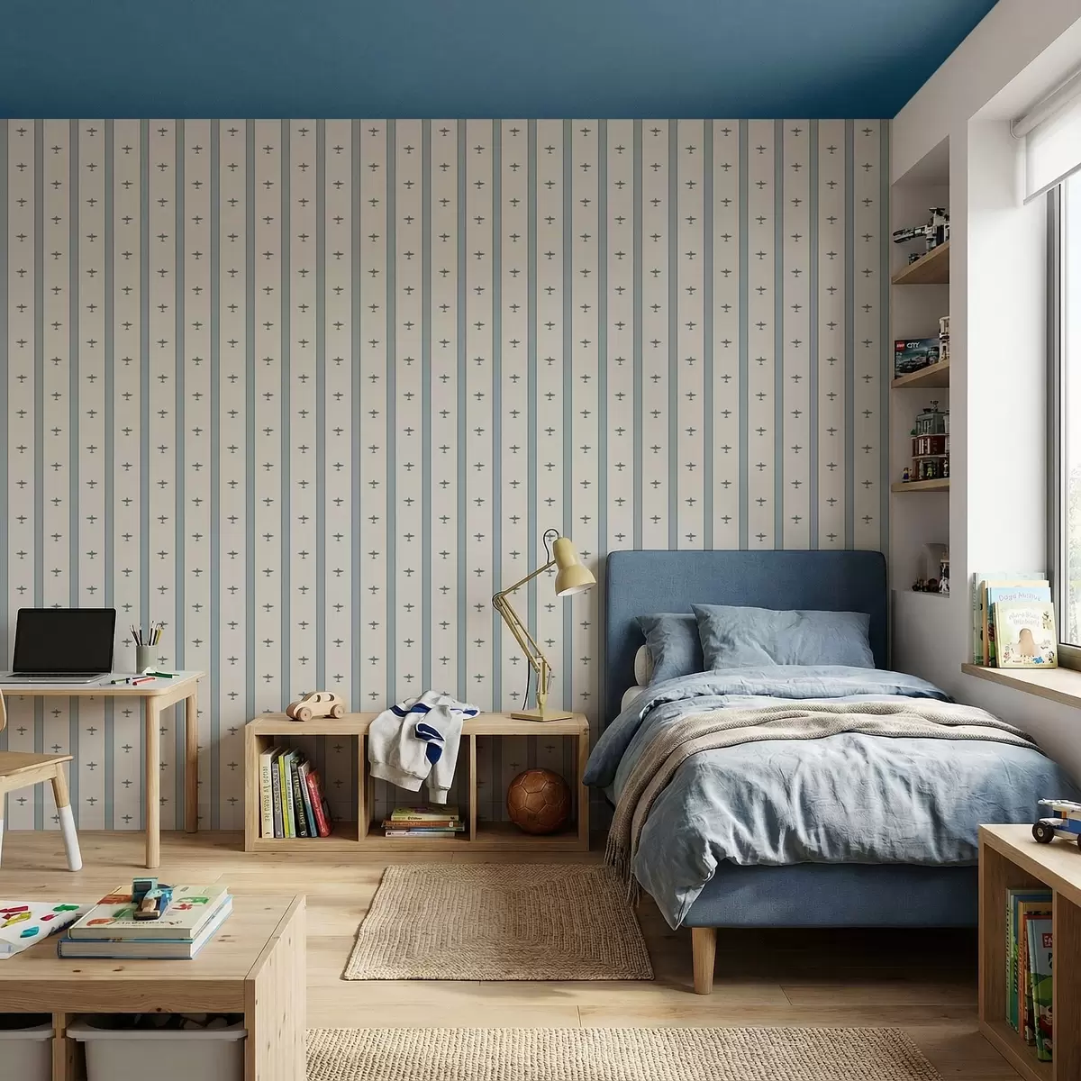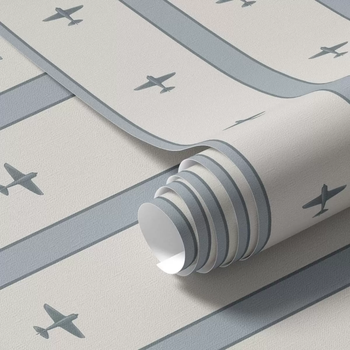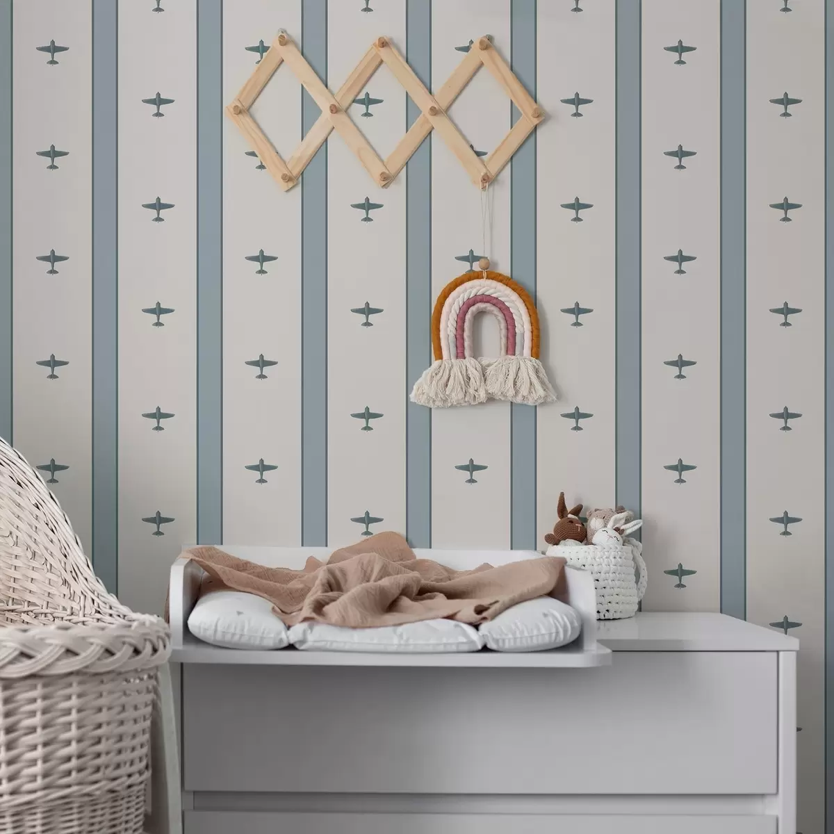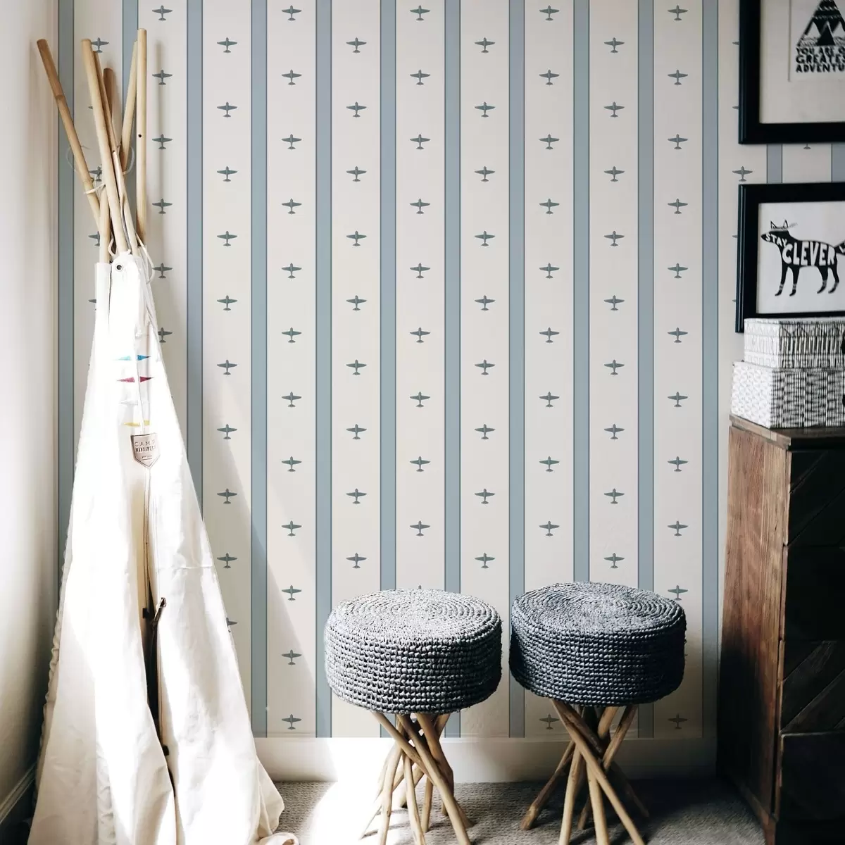 Papel pintado Aviones pequeños a rayas sobre fondo azul a01171