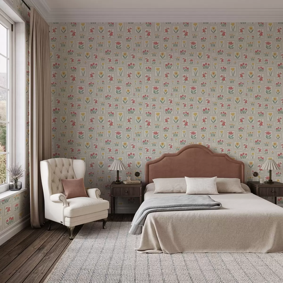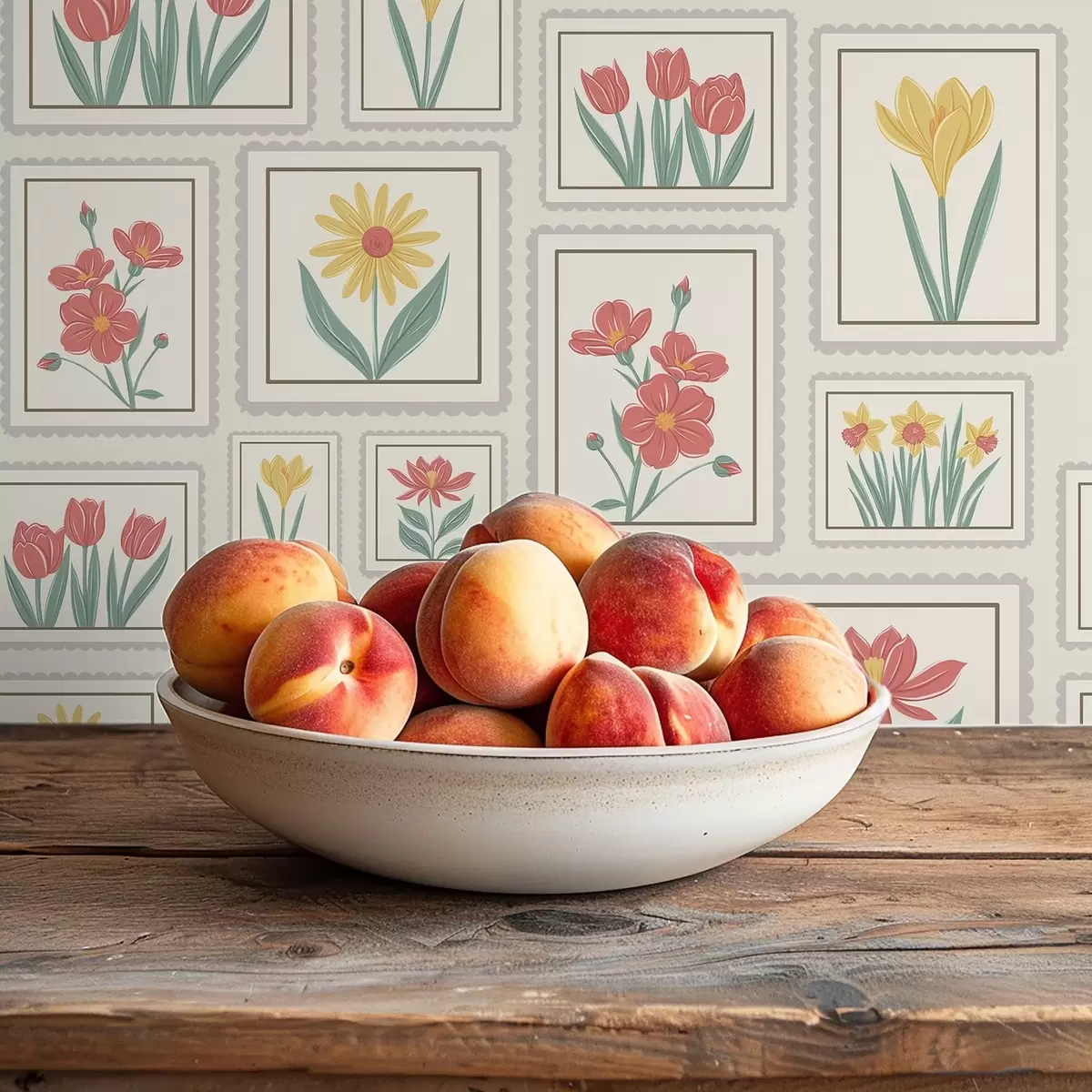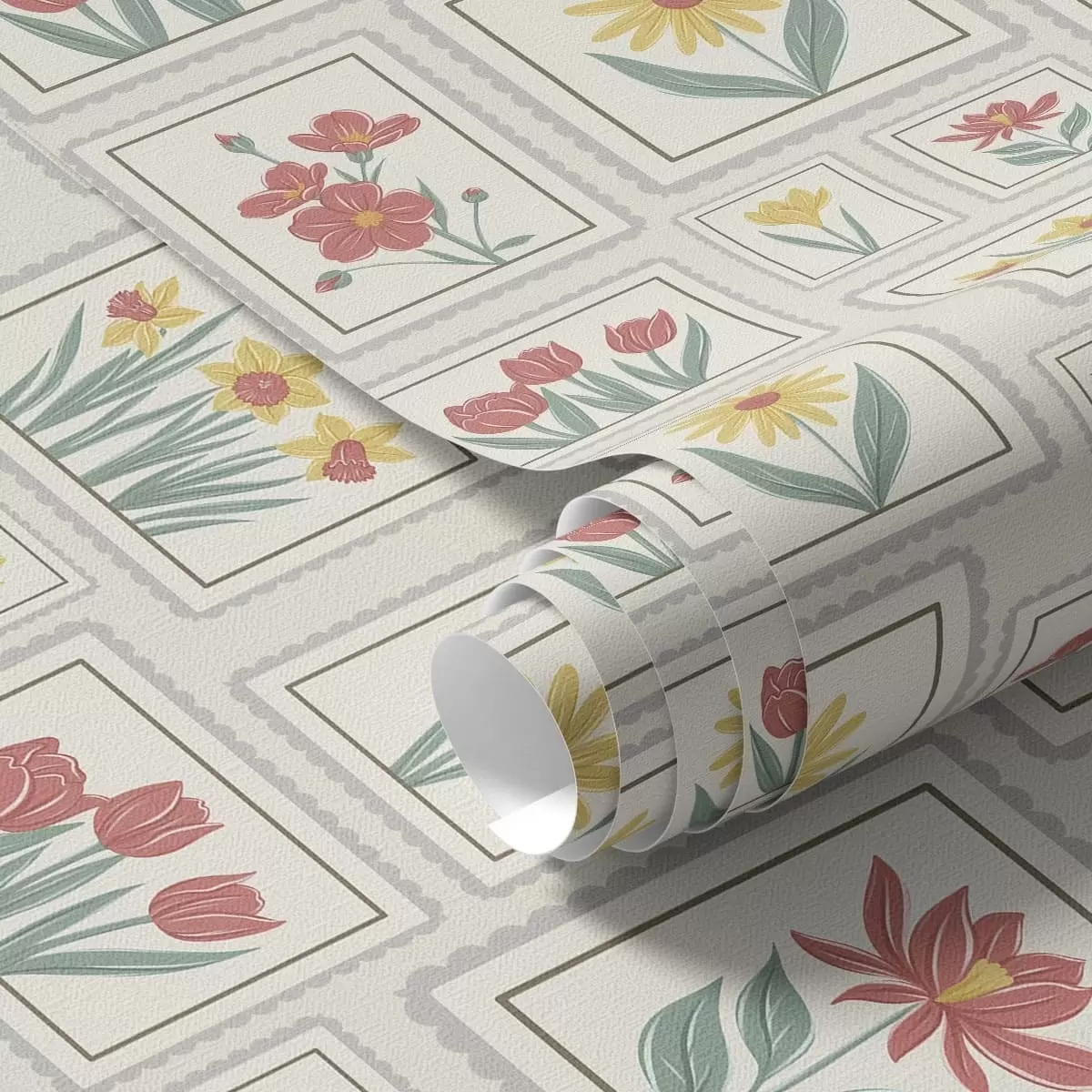 Papel pintado Ilustraciones florales enmarcadas sobre fondo claro a01173v1