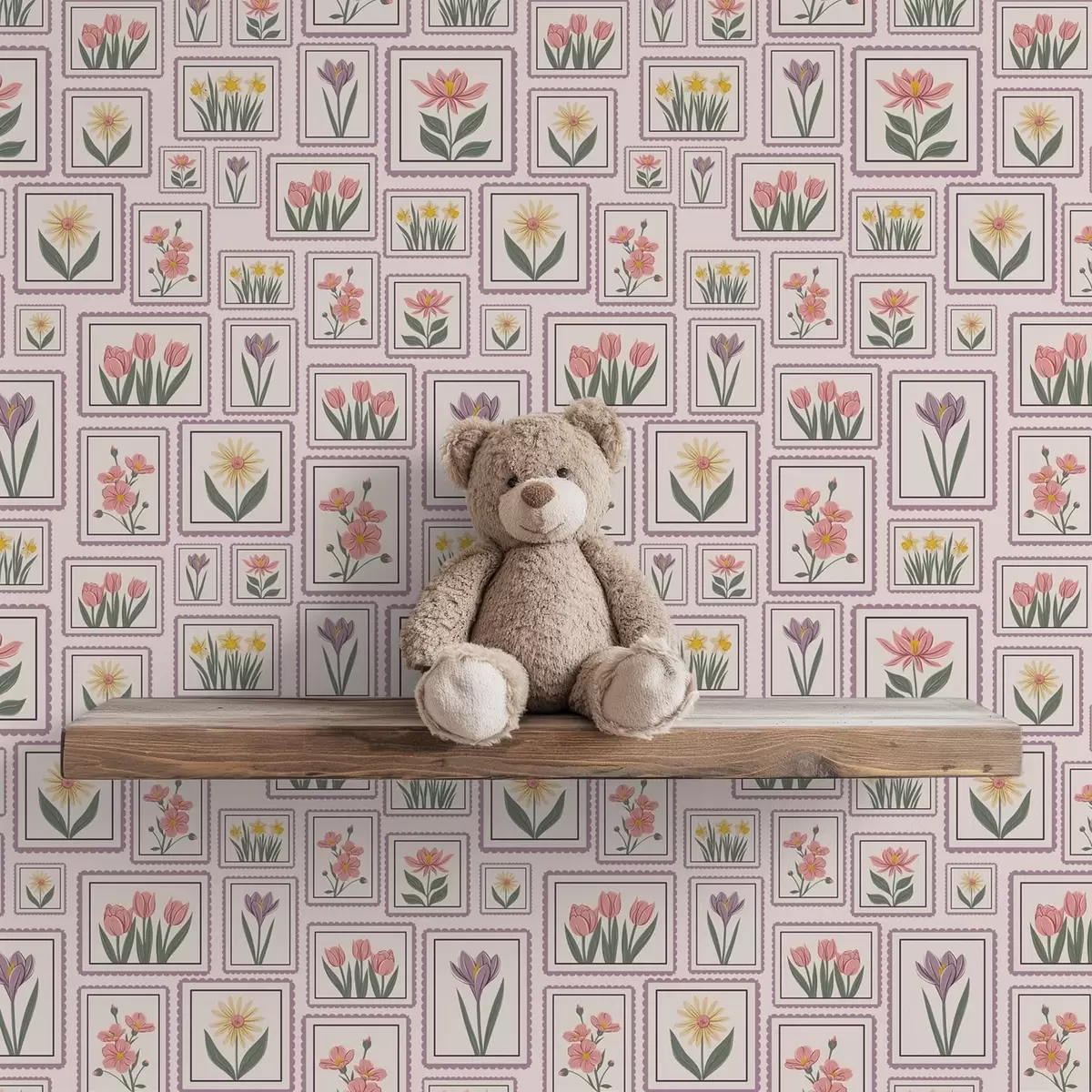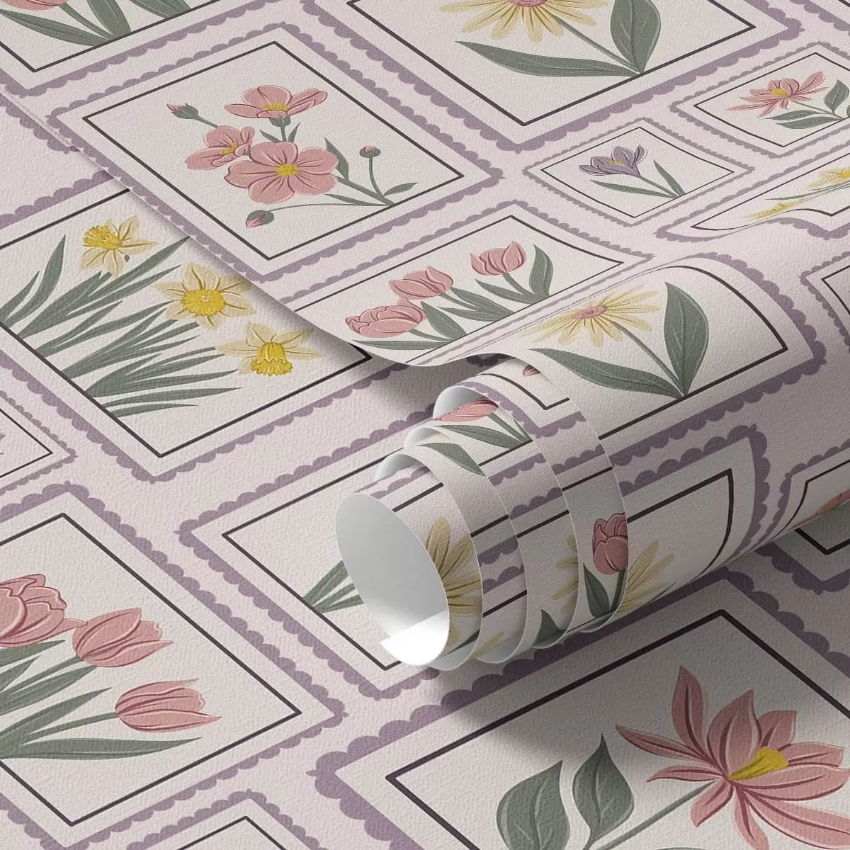Papel pintado Ilustraciones florales enmarcadas en tonos lila a01173v2