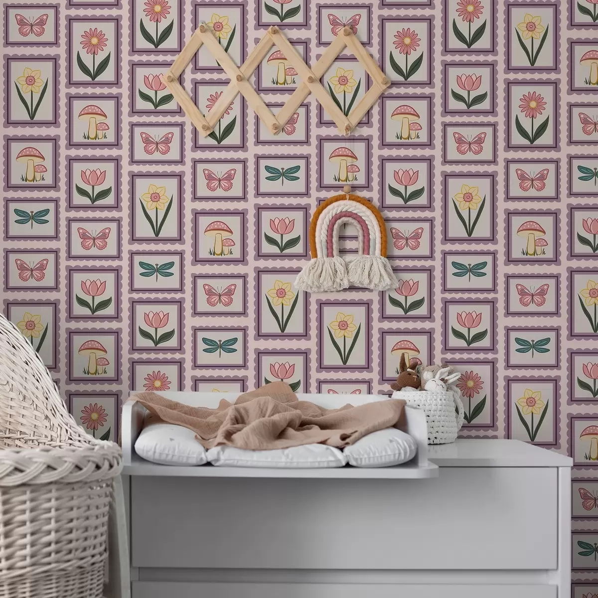 Papel pintado Ilustraciones enmarcadas en tonos lila a01175v1