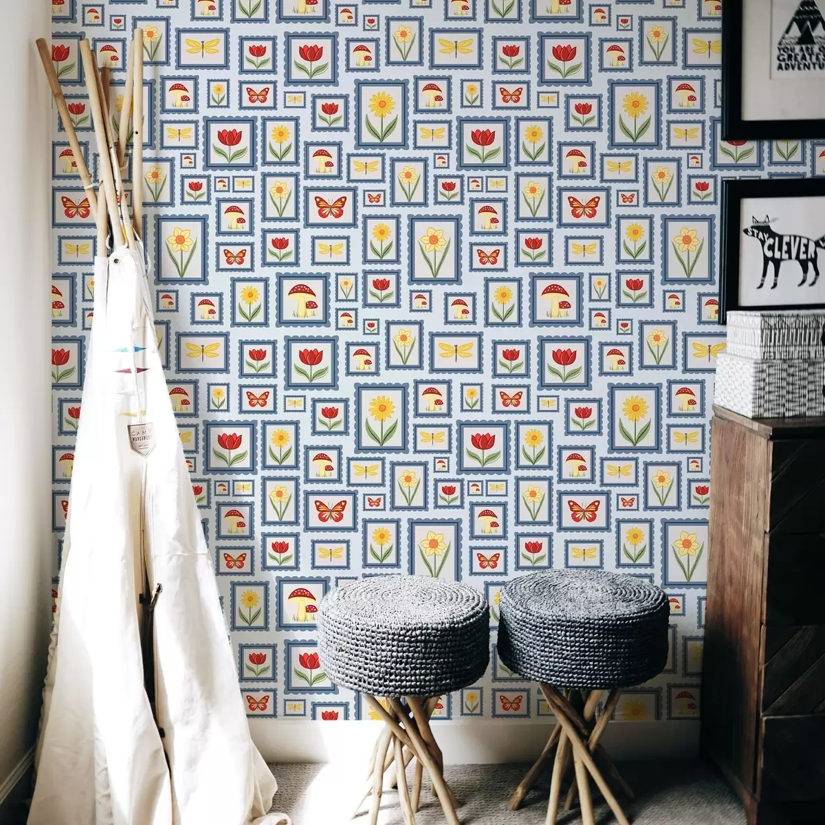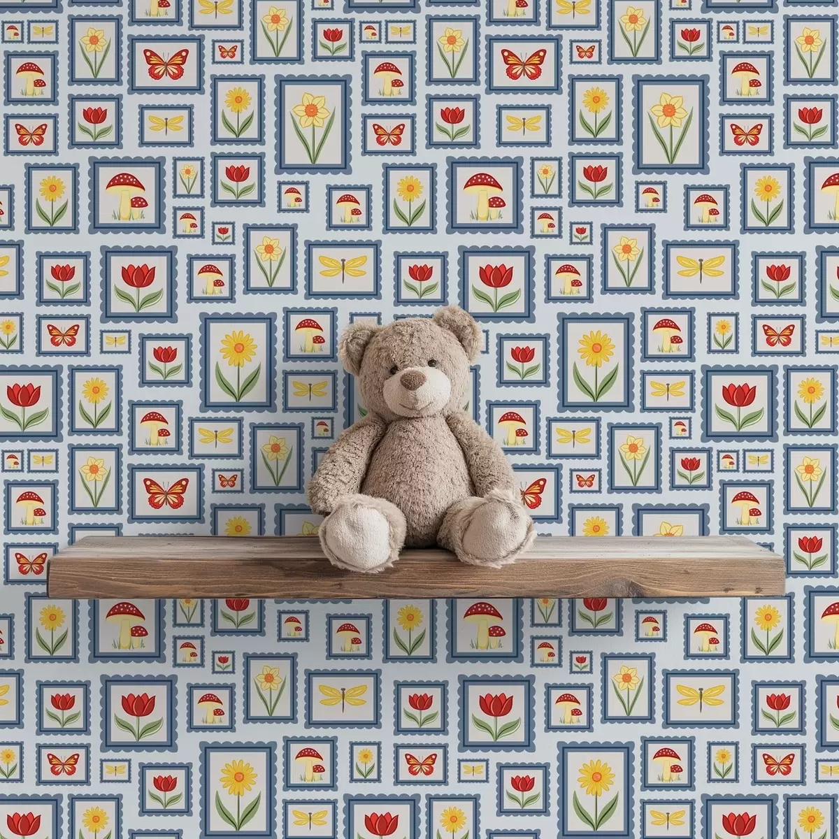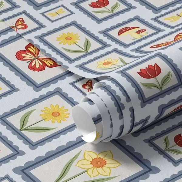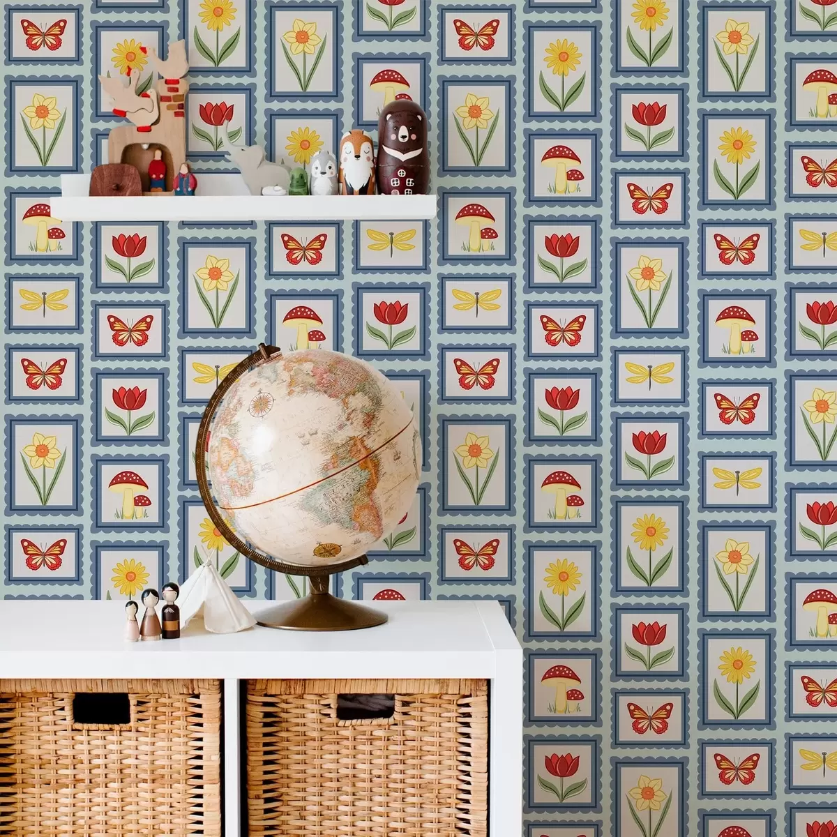 Papel pintado Ilustraciones enmarcadas sobre fondo azul a01176