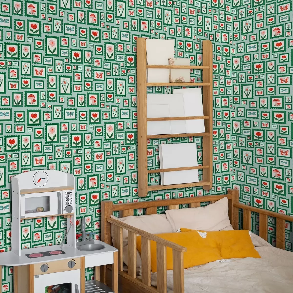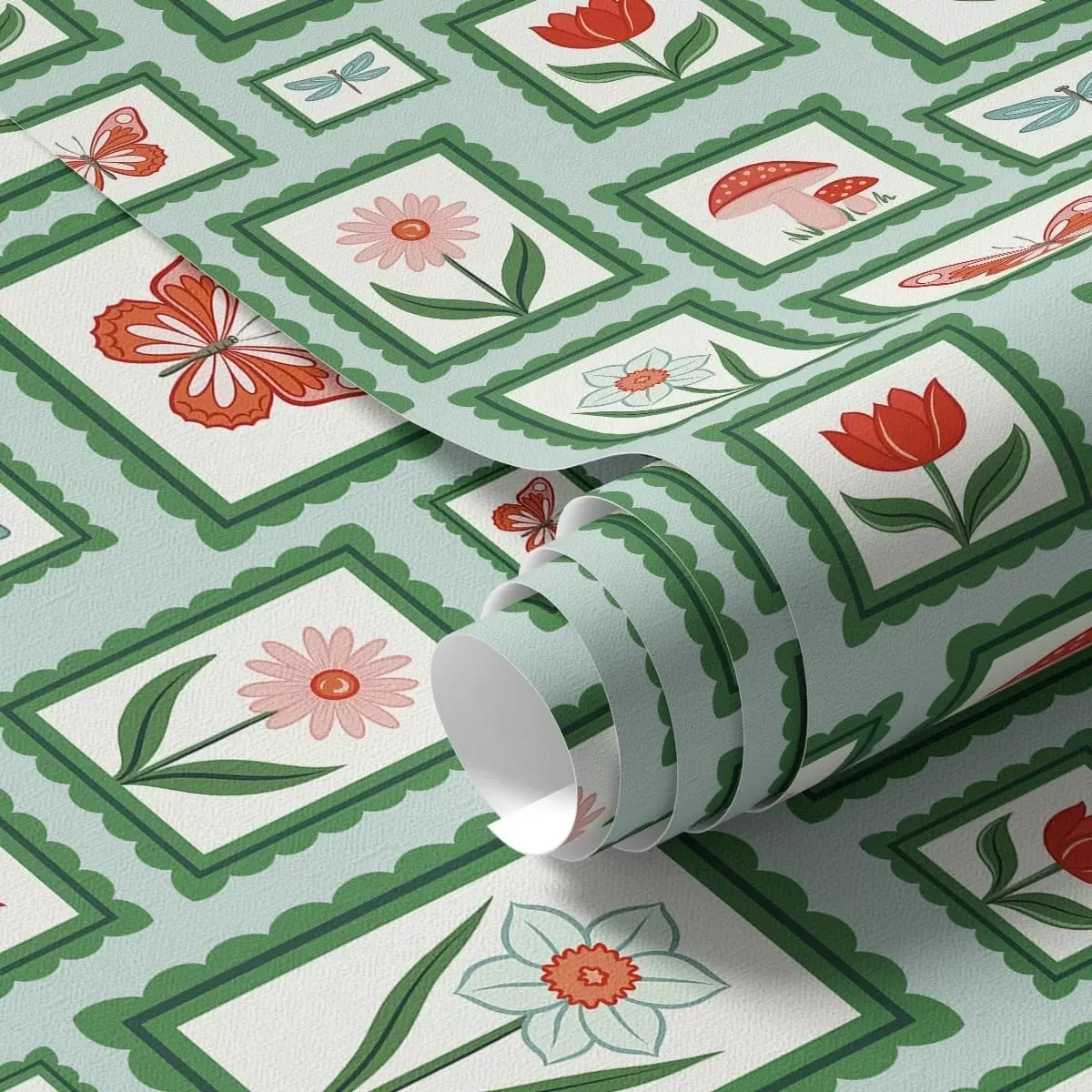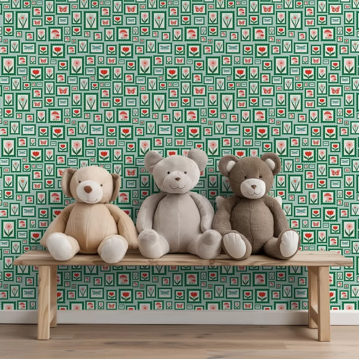 Papel pintado Ilustraciones enmarcadas con bordes verdes a01176v1