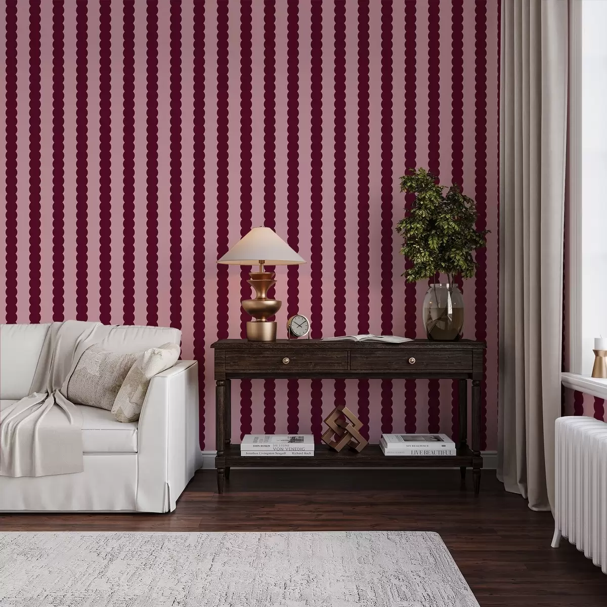 Papel pintado Rayas onduladas en color burdeos, de estilo minimalista a01182v5