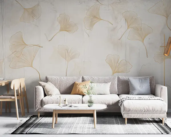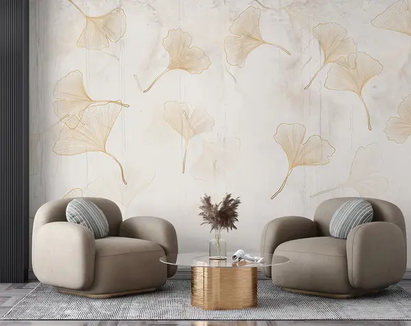 Wall Mural Photo Wallpaper Ginkgo leaves in beige tones Nr. u96467