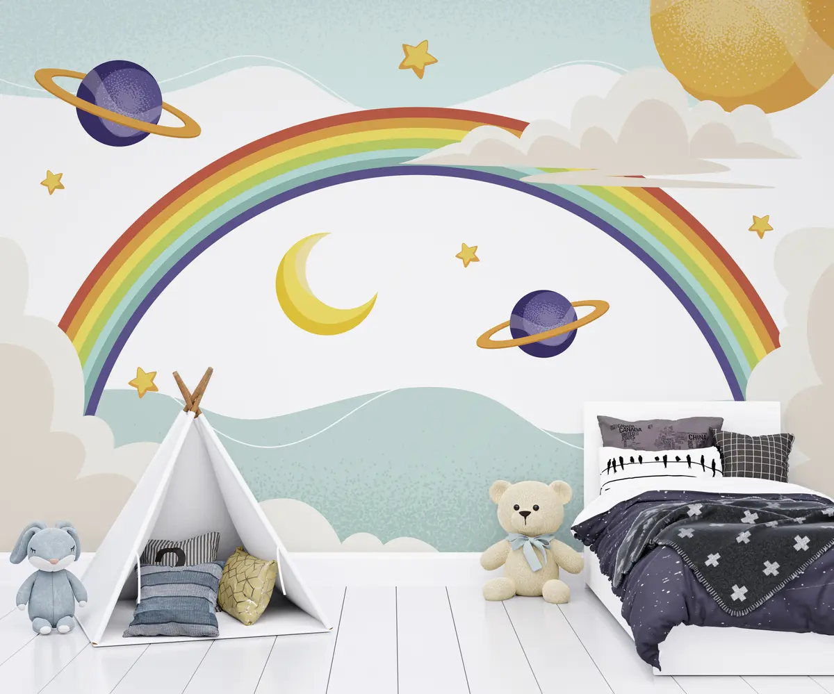 Wall Mural Photo Wallpaper Rainbow in the clouds, planets, stars Nr. u94327