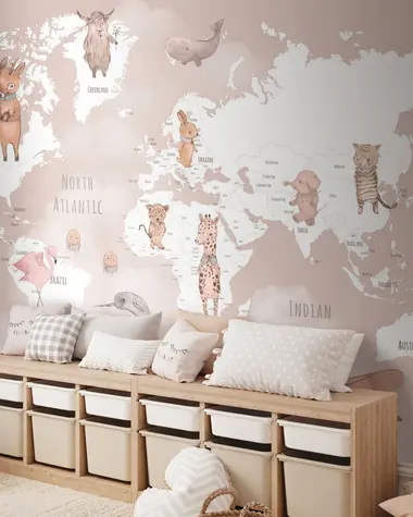 Wall Mural Photo Wallpaper Children's Map of the World of Pink Nr. u74511