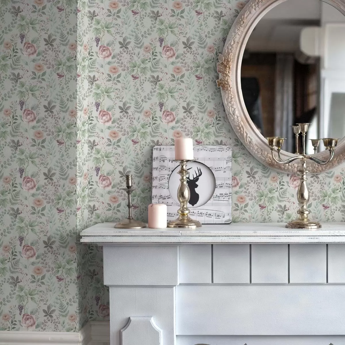 Wallpapers Pastel garden with roses, ferns and grapes Nr. a00867