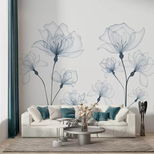 Wall Mural Photo Wallpaper Delicate blue watercolour flowers Nr. w00744v1