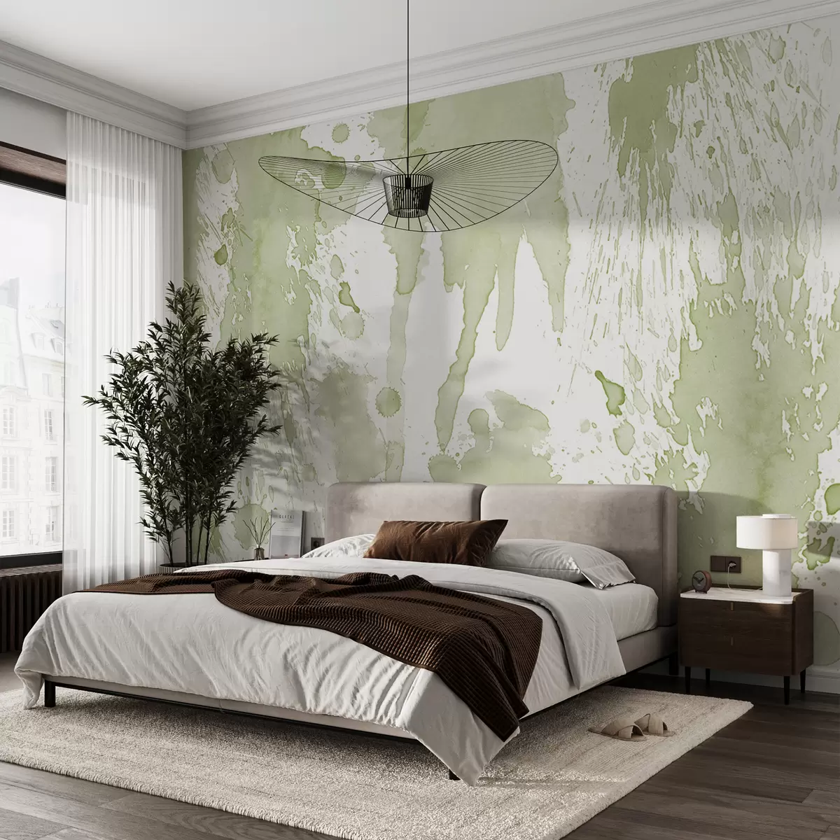 Wall Mural Photo Wallpaper Watercolor splashes, paint drawing abstraction, green color Nr. w01285