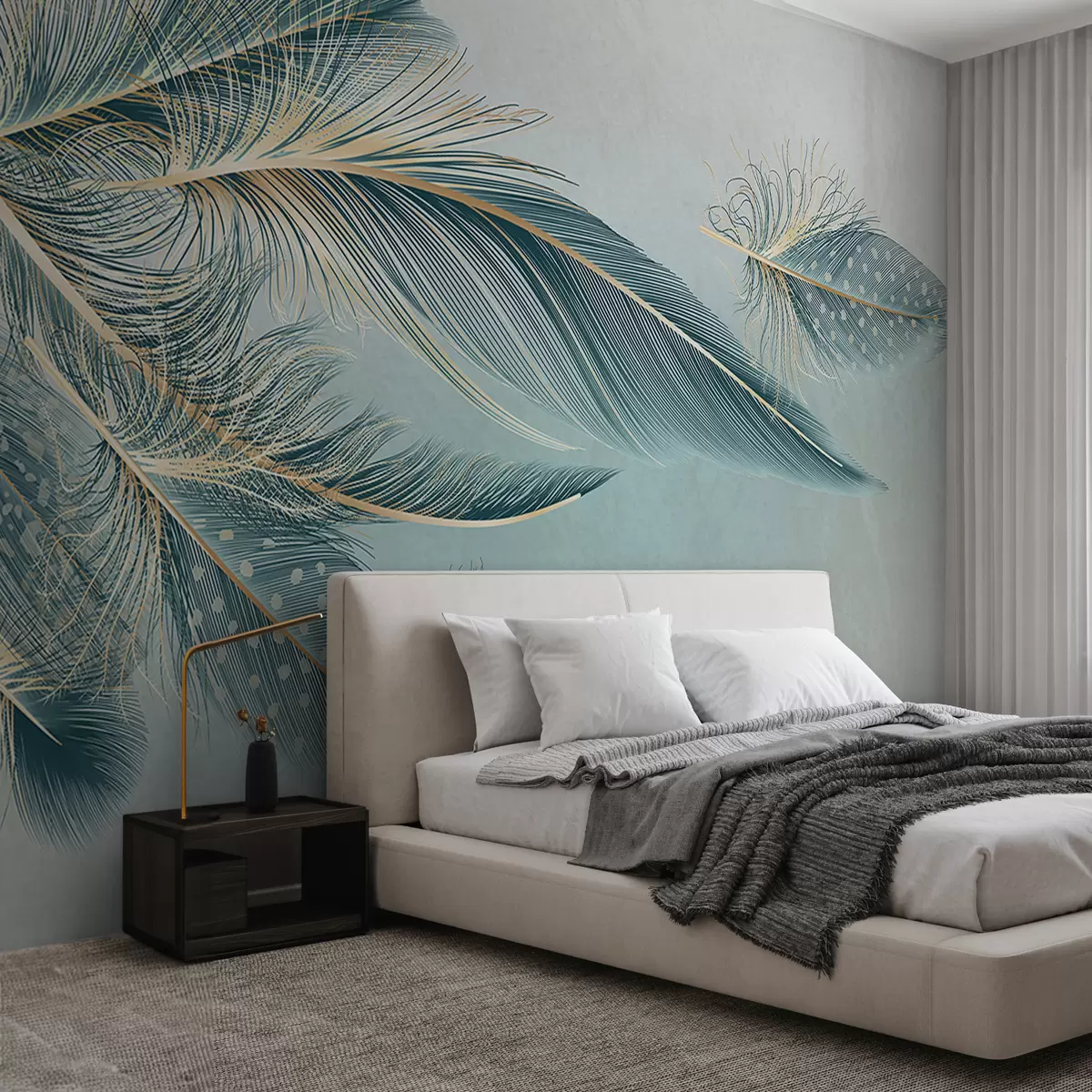 Wall Mural Photo Wallpaper Delicate feathers in shades of blue Nr. w01312