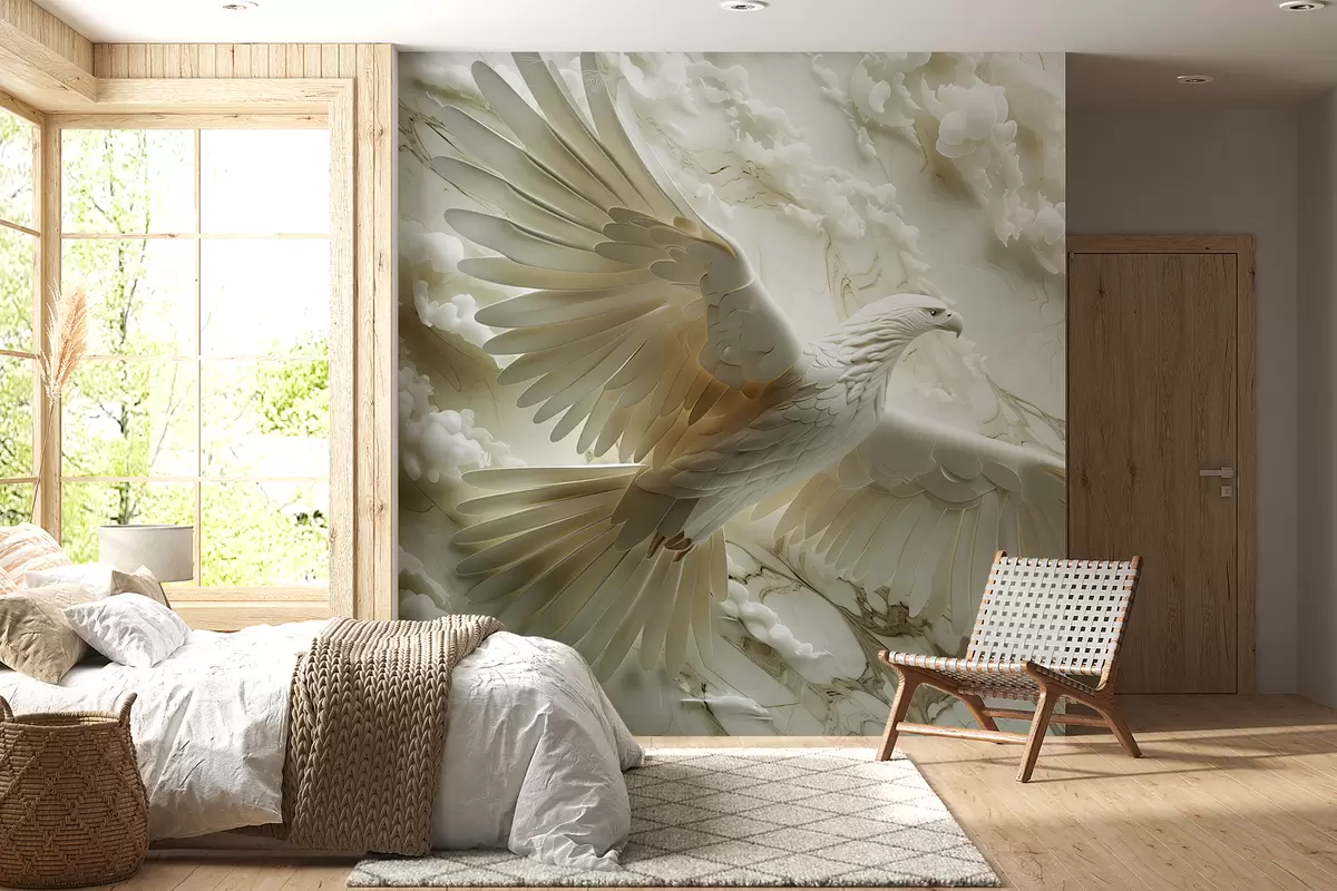 Wall Mural Photo Wallpaper 3D white eagle on a background of clouds and marble Nr. w01477