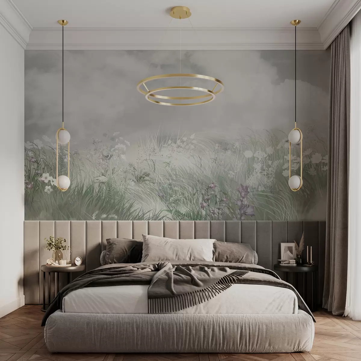 Wall Mural Photo Wallpaper Wild flowers and grasses with gray sky and clouds Nr. w01624v3