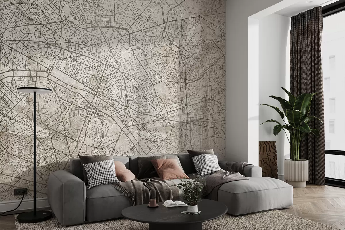 Wall Mural Photo Wallpaper Paris city map, line drawing, architecture, France, beige colors Nr. w01697