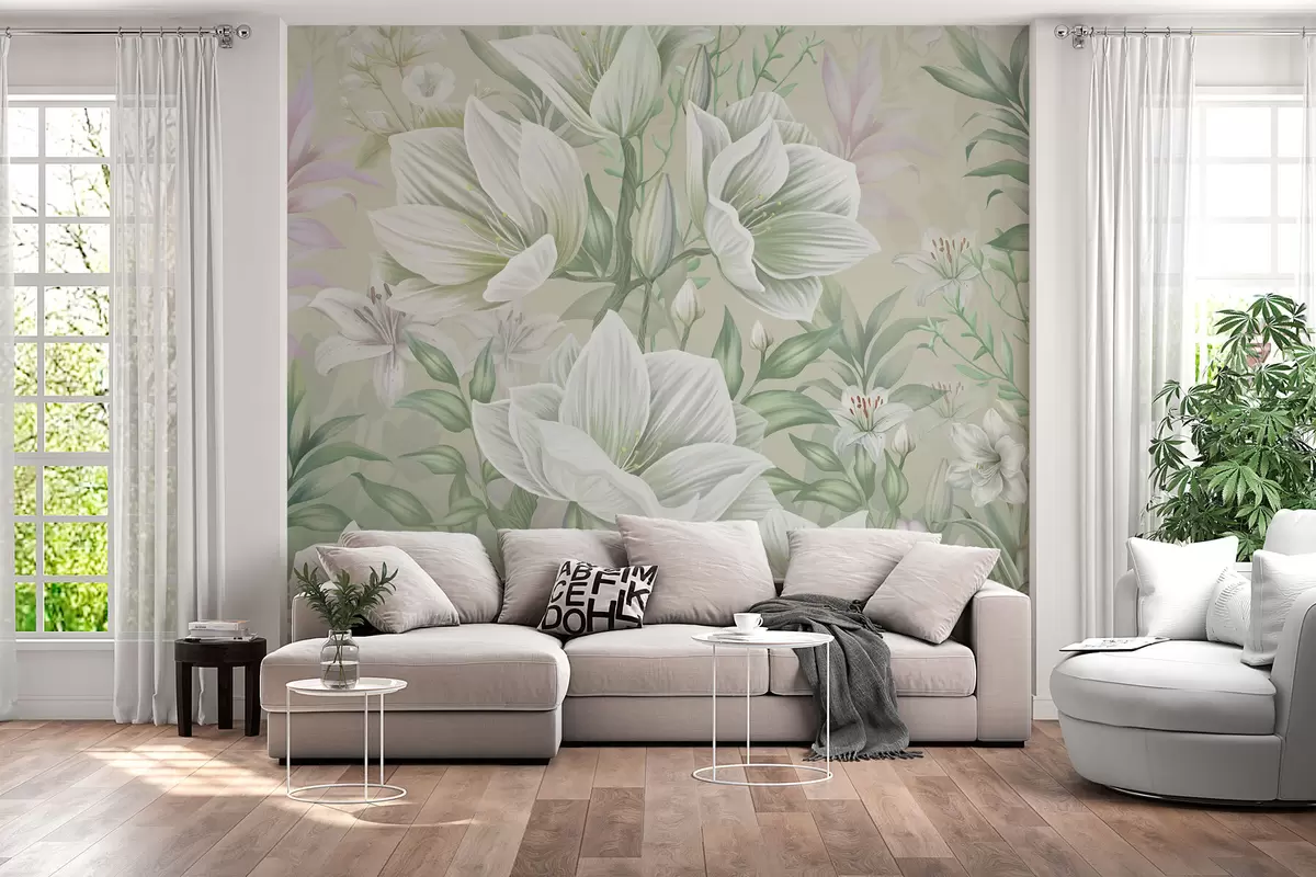 Wall Mural Photo Wallpaper Beautiful large flowers with lilies Nr. w01751