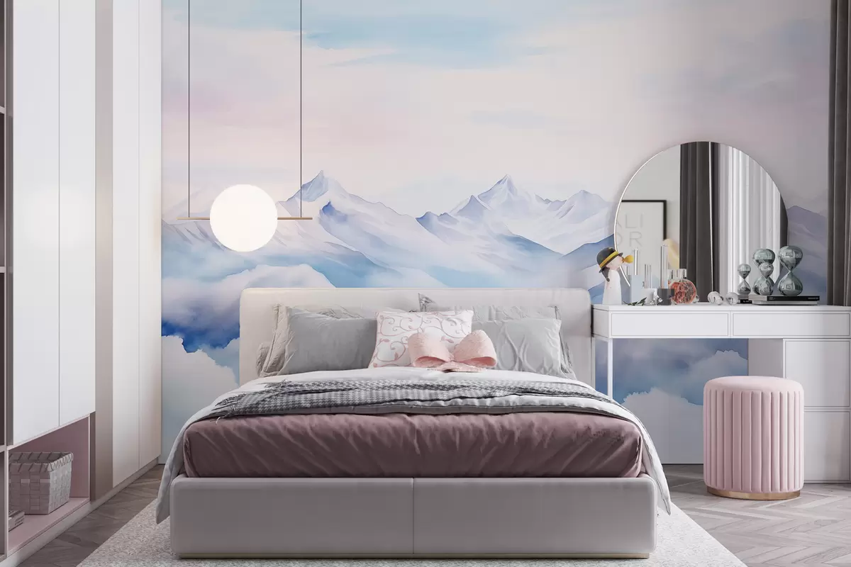 Wall Mural Photo Wallpaper Mountains landscape, watercolor, soft purple colors Nr. w01787