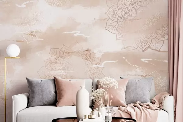Wall Mural Photo Wallpaper Mandalas on the pastel background, vivid brush strokes, beige colors Nr. w03409