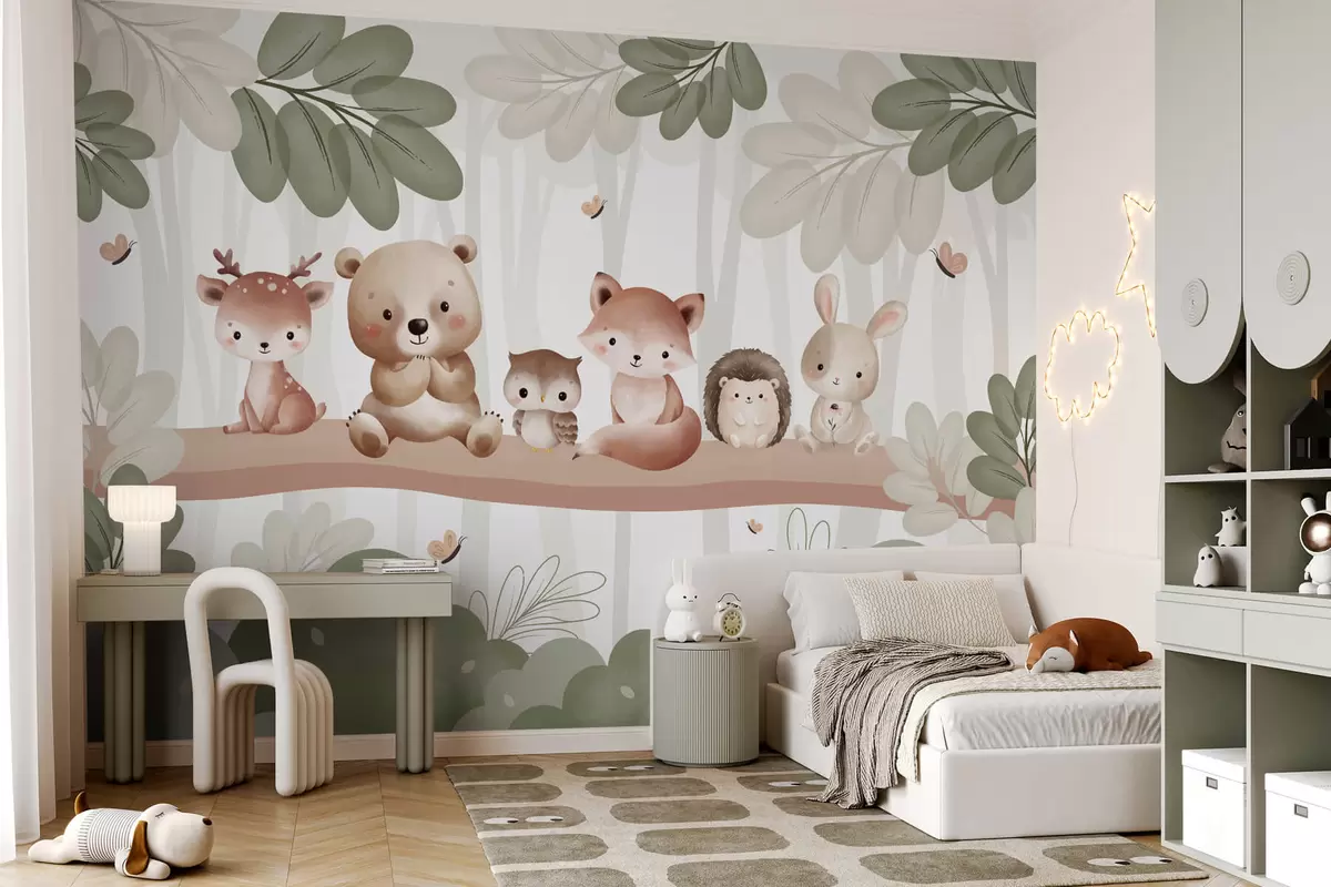 Wall Mural Photo Wallpaper Cute animals in the forest Nr. w03411
