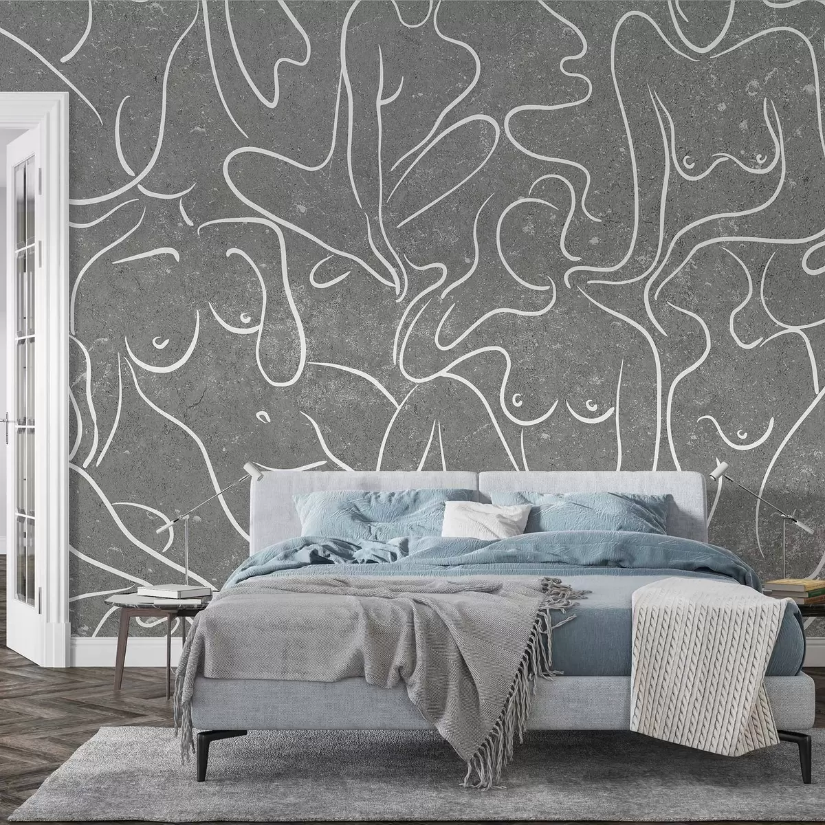 Wall Mural Photo Wallpaper Line drawing anatomical silhouettes, abstraction, grey background Nr. w03756v1