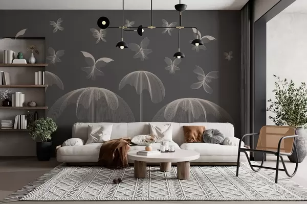 Wall Mural Photo Wallpaper minimalist linear wallpaper butterflies and fountains on a dark gray background Nr. w03762v1