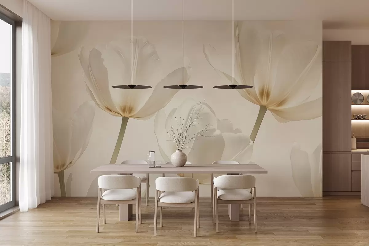 Wall Mural Photo Wallpaper Beautiful tulips, floral, beige colors, realism Nr. w03877