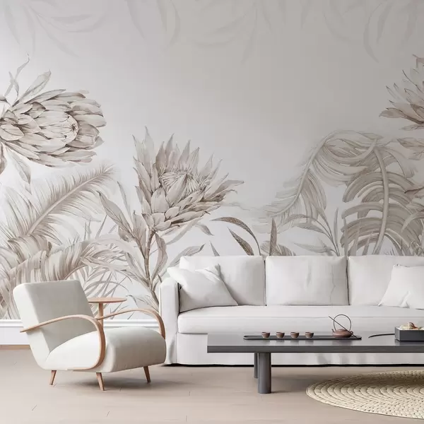 Wall Mural Photo Wallpaper Protea among tropical leaves, beige shades w03952