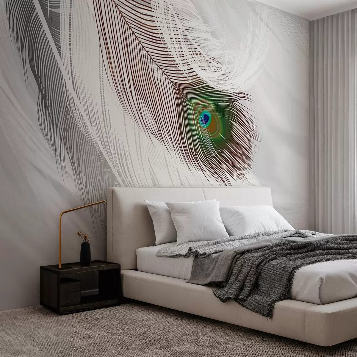 Wall Mural Photo Wallpaper a large peacock feather among the feathers Nr. w03961