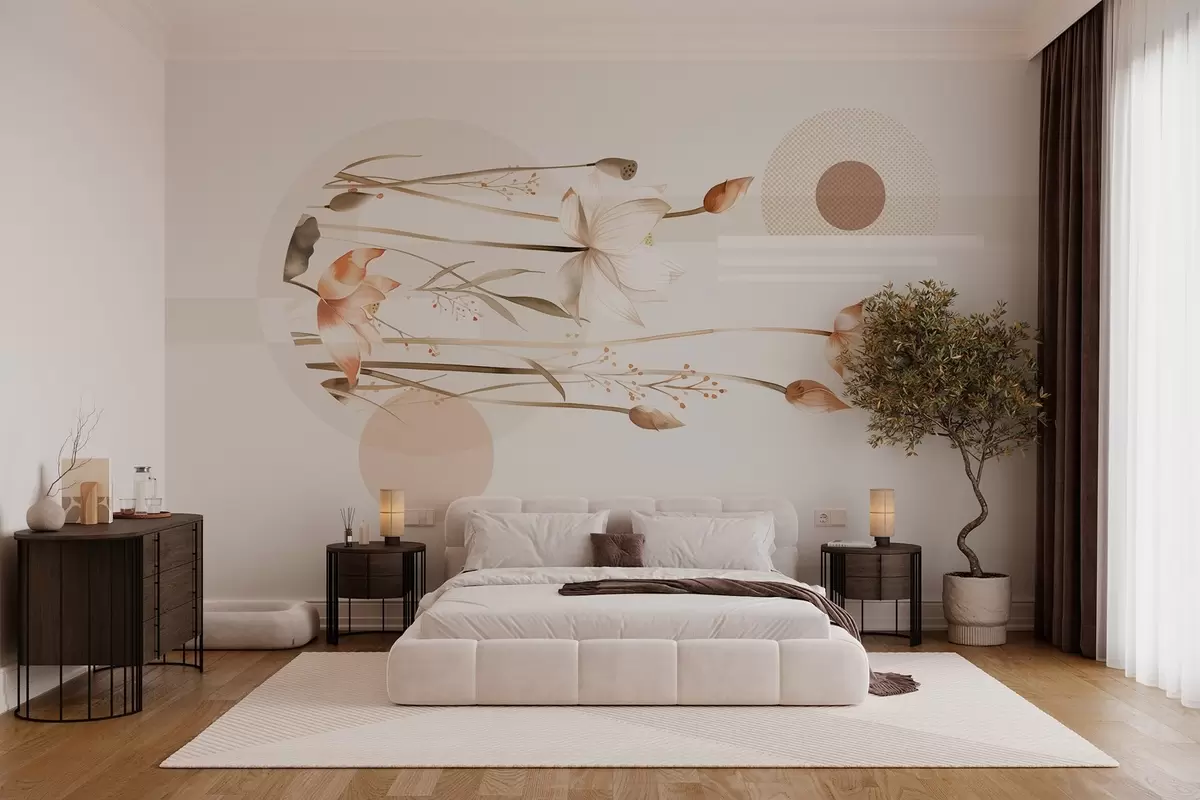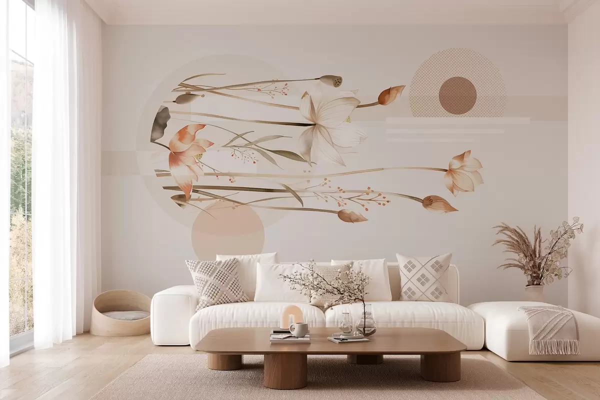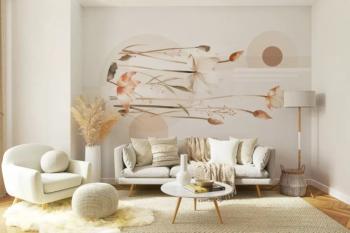 Wall Mural Photo Wallpaper pastel lilies and boho geometry Nr. w03964