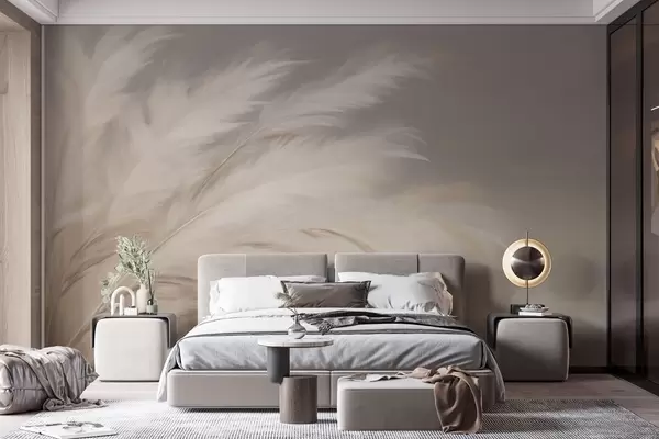 Wall Mural Photo Wallpaper Soft fluffy grasses in beige and grey Nr. w03992