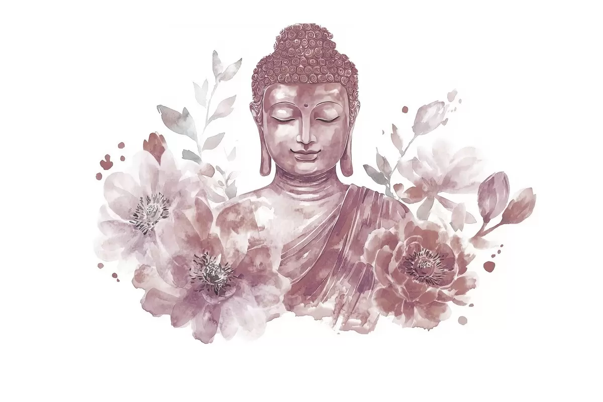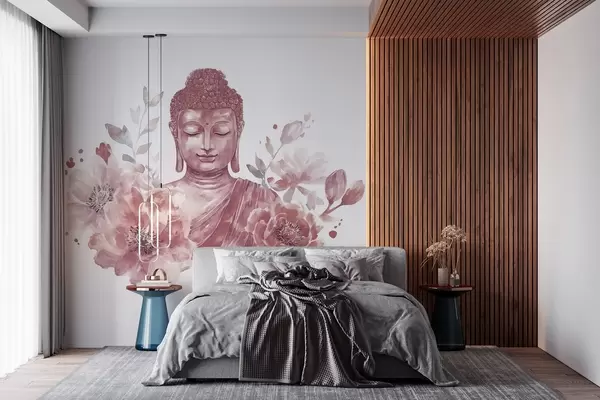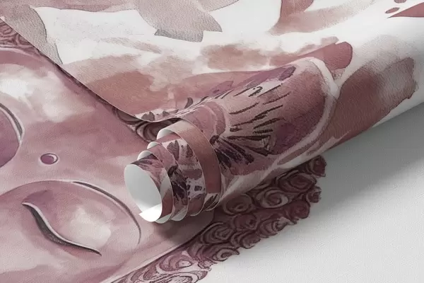 Wall Mural Photo Wallpaper Watercolor Buddha with flowers, spiritual, burgundy color palette Nr. w04005v2