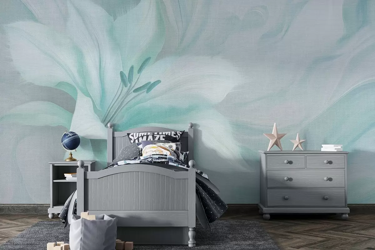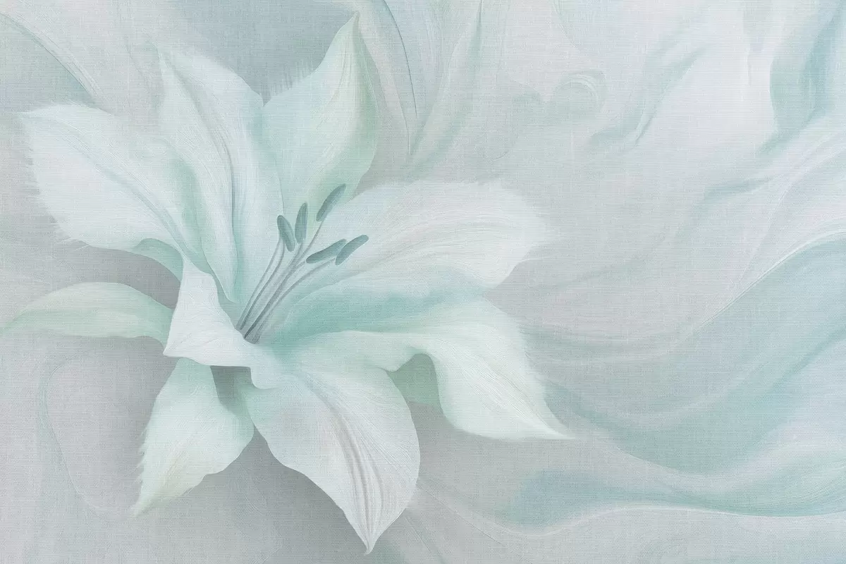 Wall Mural Photo Wallpaper Lily flower fluid abstraction, floral, aquamarine colors Nr. w04006v3