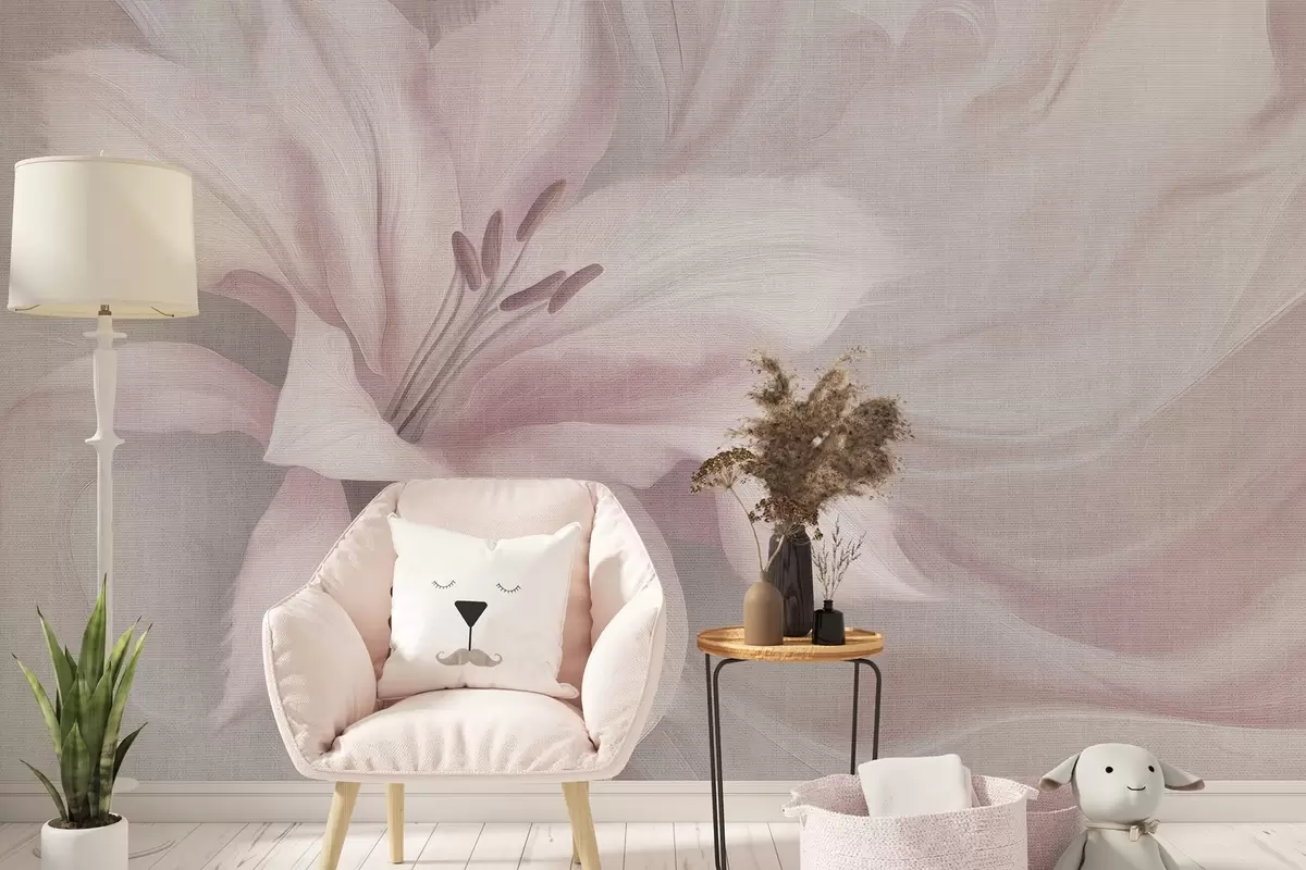 Wall Mural Photo Wallpaper Lily flower fluid abstraction, floral, pink and beige colors Nr. w04006v4