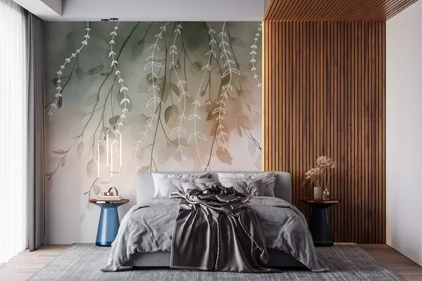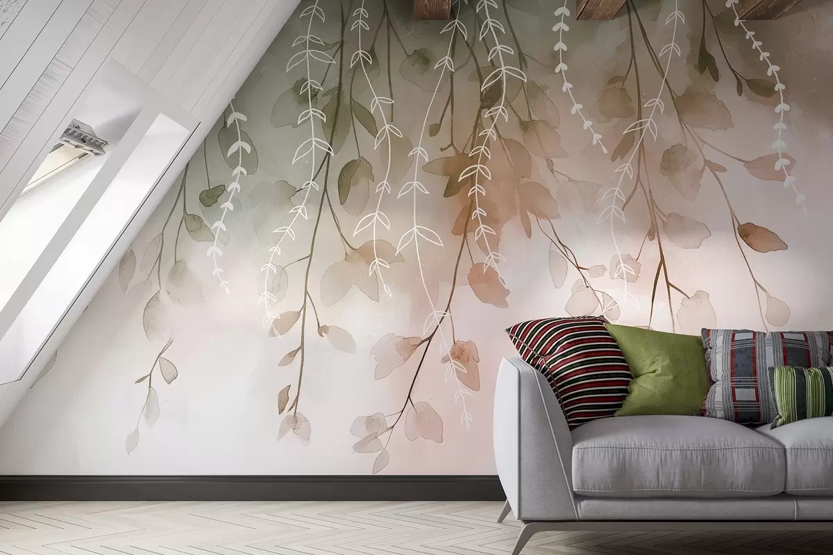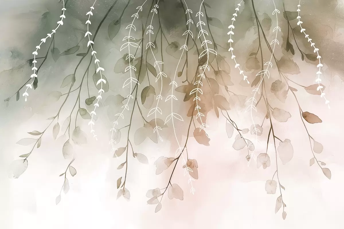 Wall Mural Photo Wallpaper Branches with leaves in watercolor style, natural autumn colors Nr. w04007v1