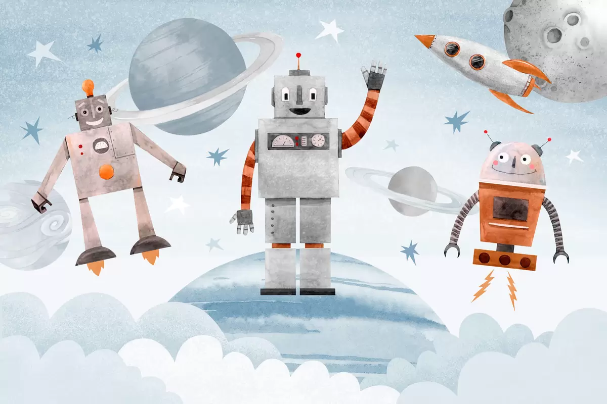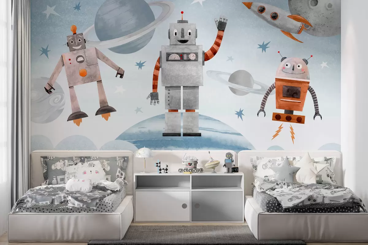 Wall Mural Photo Wallpaper Robots in space in watercolor style Nr. w04016
