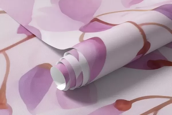 Wall Mural Photo Wallpaper Delicate watercolor composition with cascading wisteria in soft lavender and pink tones, creating a peaceful, Nr. w04034