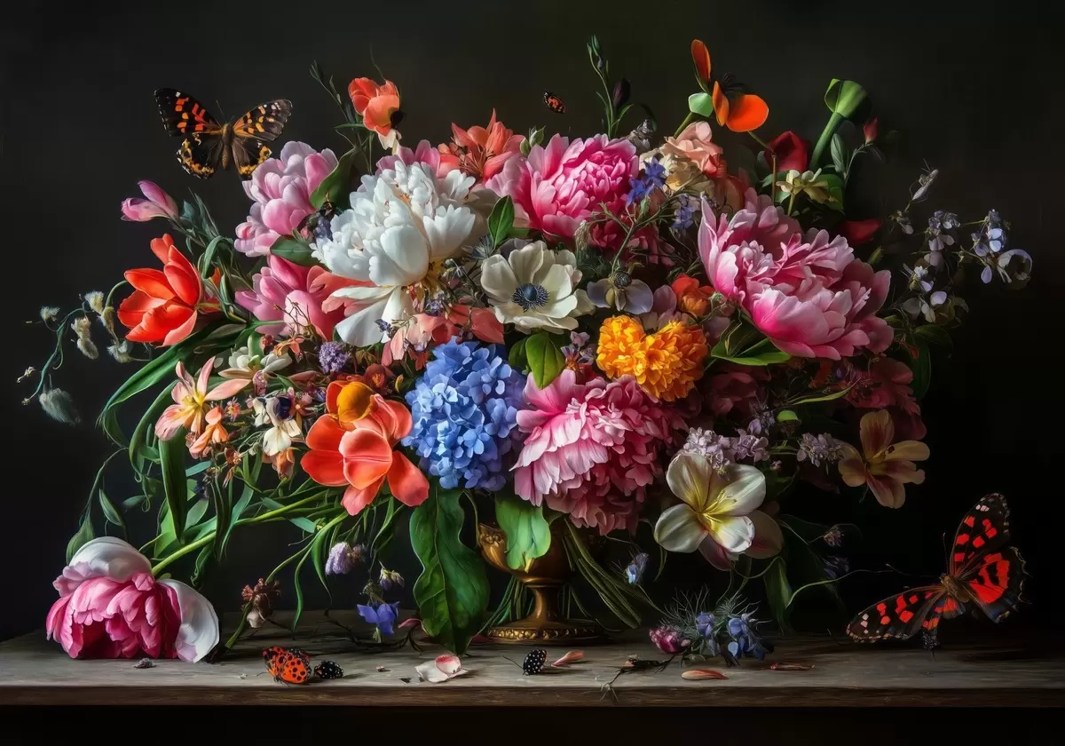 Wall Mural Photo Wallpaper bouquet in the style of Dutch oil painting of the XVII century with a luxurious floral composition. Nr. w04078