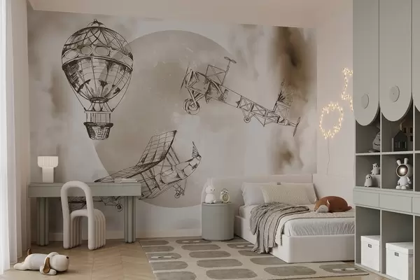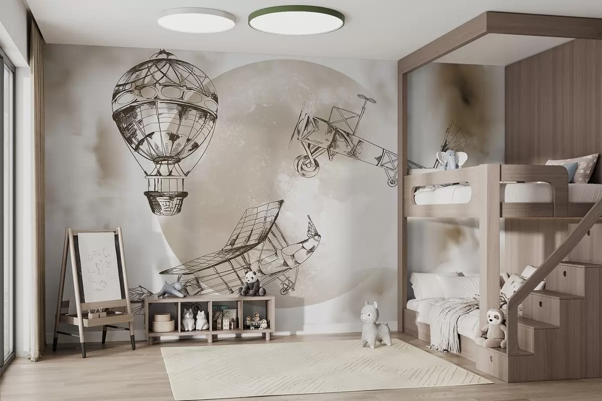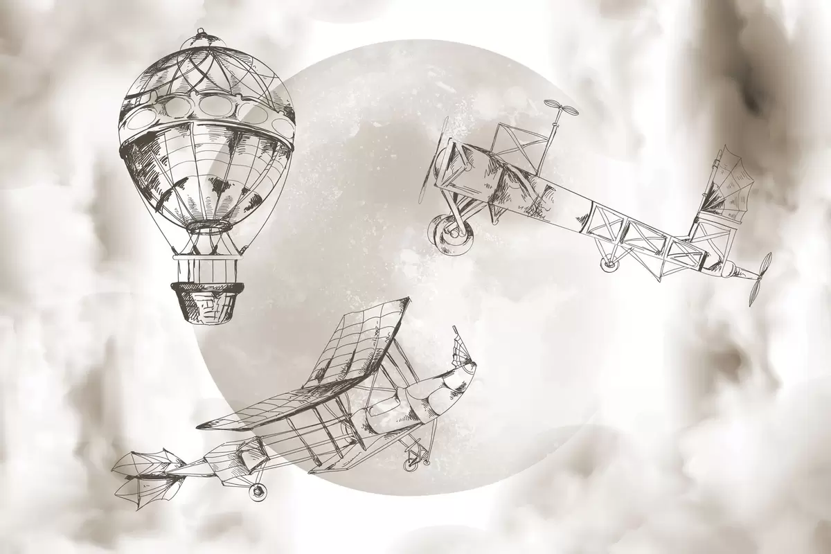 Wall Mural Photo Wallpaper Retro airplanes against the background of the moon and clouds Nr. w04085v1