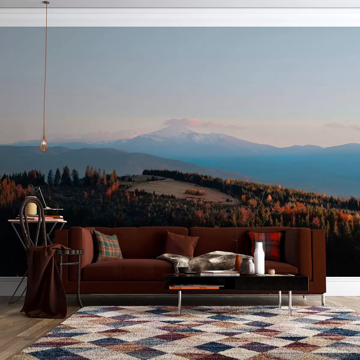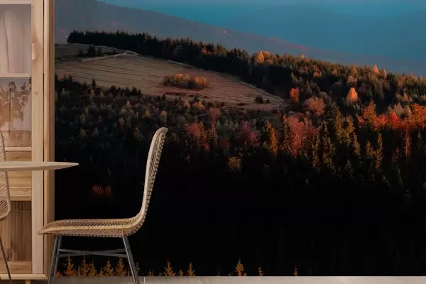 Wall Mural Photo Wallpaper Carpathian mountains, oil style texture, autumn forest, sunset sky Nr. w04098
