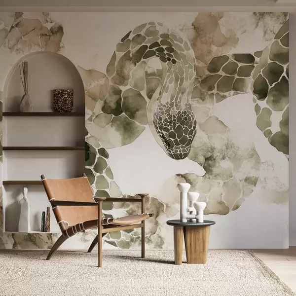 Wall Mural Photo Wallpaper Snake silhouette, watercolor style, olive colors Nr. w04113v3