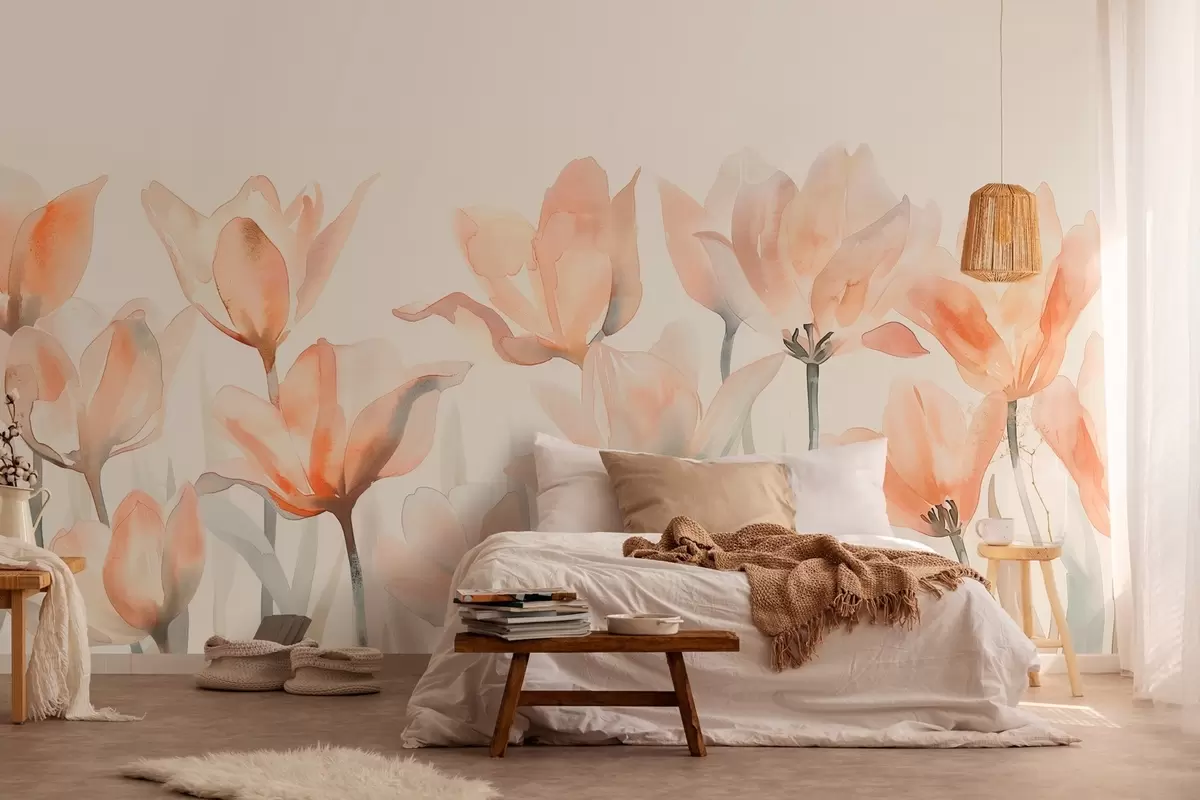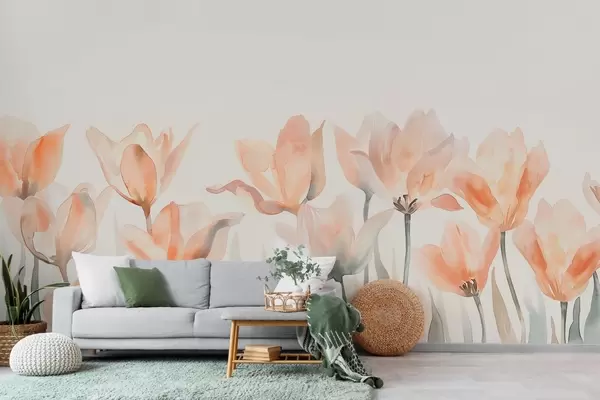 Wall Mural Photo Wallpaper fresh watercolor tulips growing from below Nr. w04204
