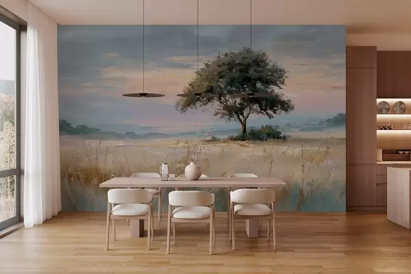 Wall Mural Photo Wallpaper tree in the middle of a field in the style of oil painting Nr. w04206