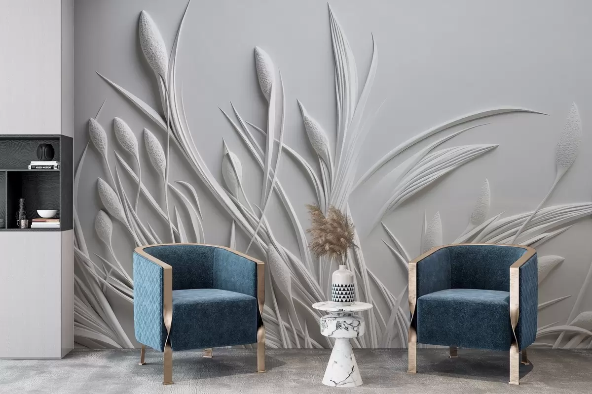 Wall Mural Photo Wallpaper Bas-relief with delicate leaves and pampas Nr. w04247