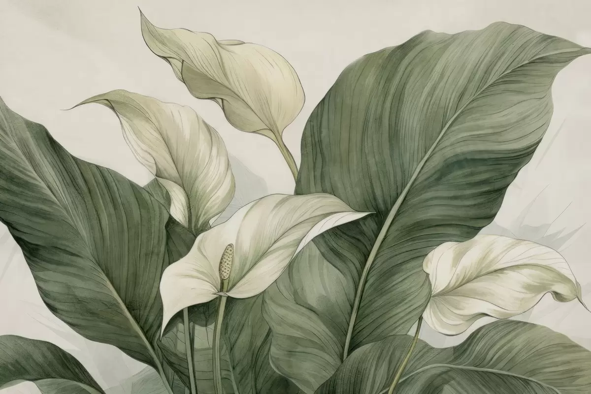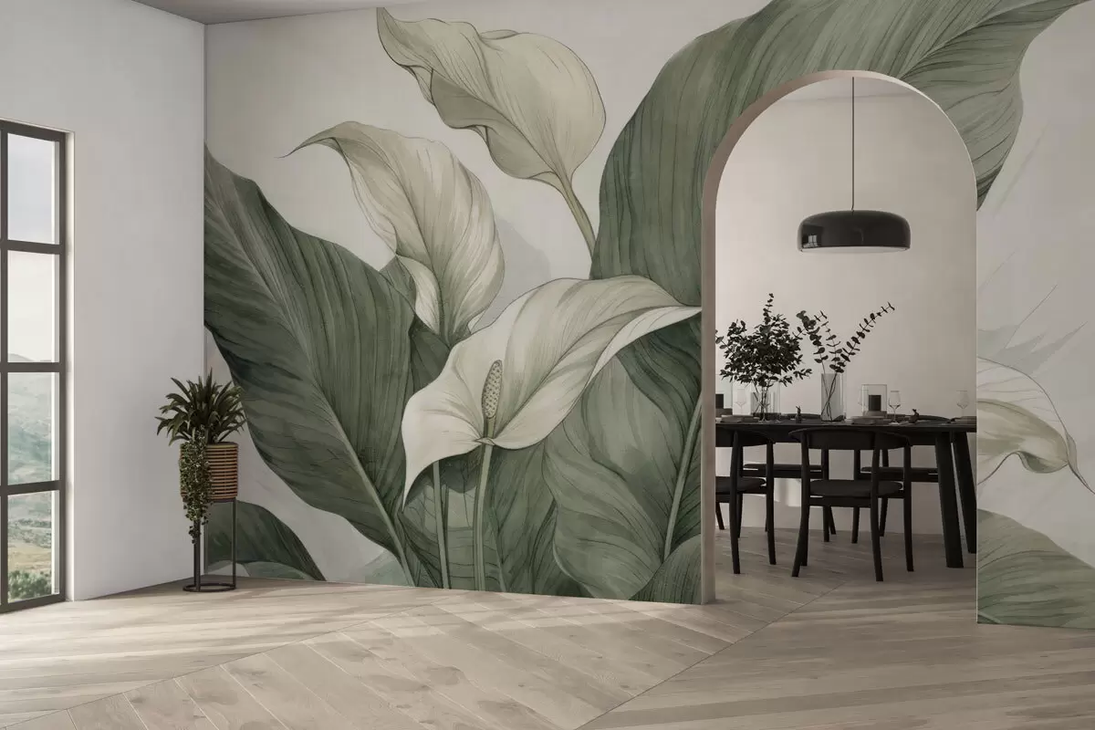 Wall Mural Photo Wallpaper Close-up of blooming spathiphyllum with large leaves Nr. w04263