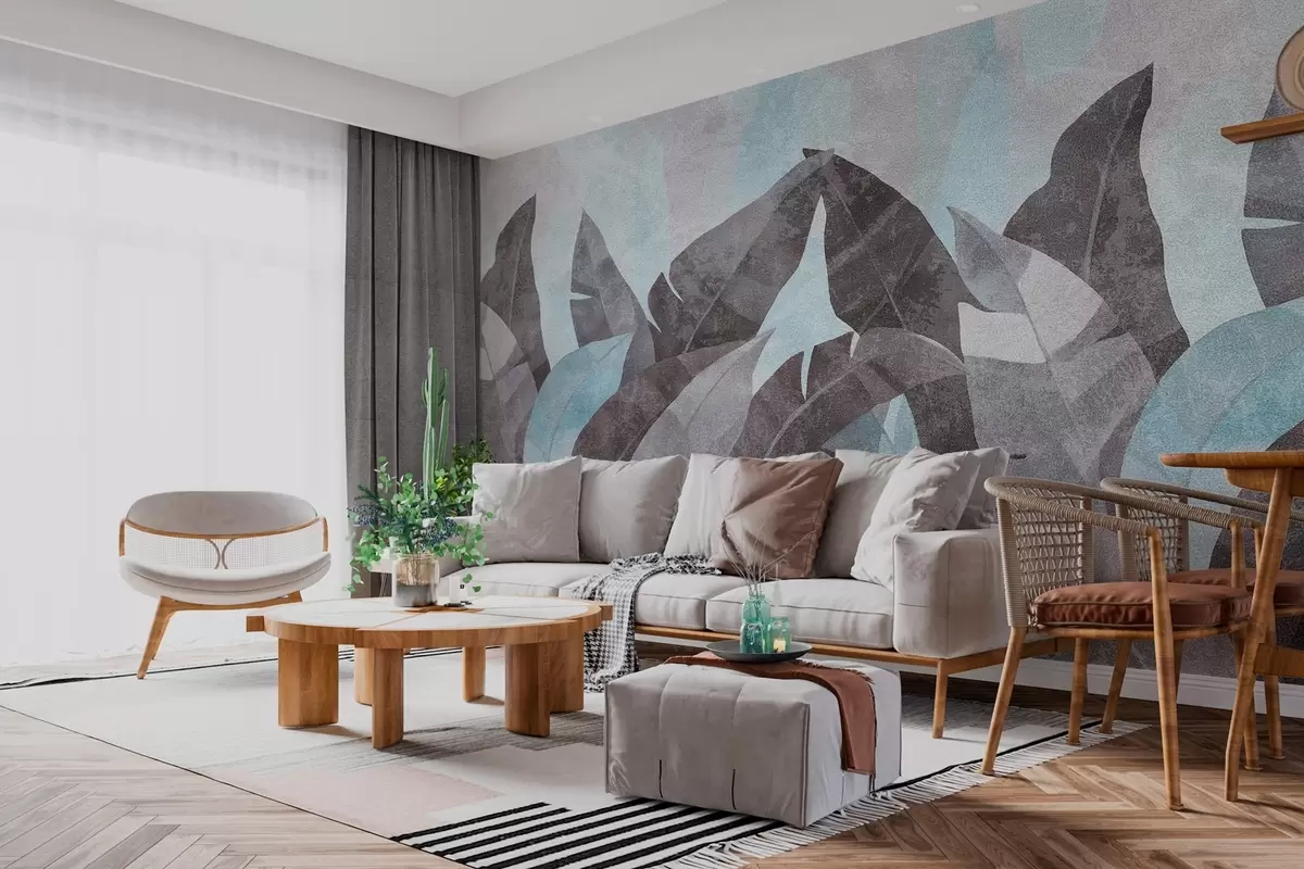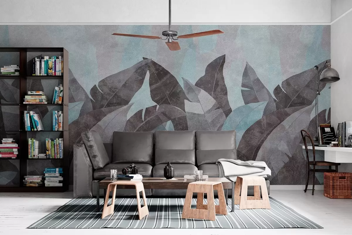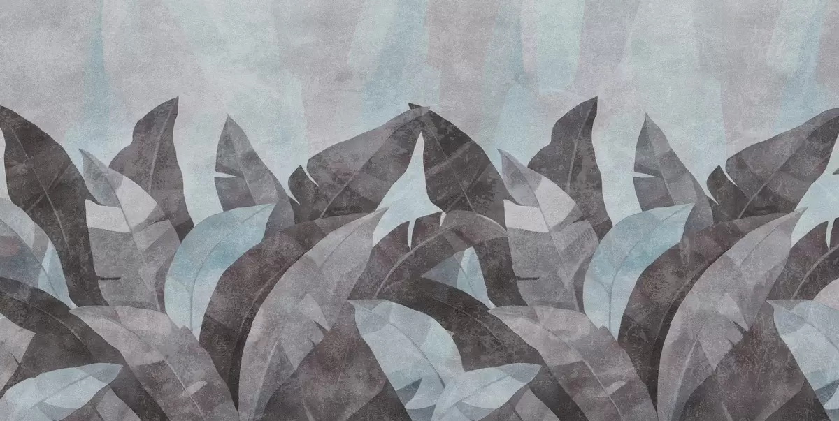 Wall Mural Photo Wallpaper textured banana leaves in shades of blue and gray Nr. w04285v2