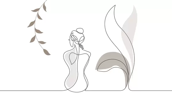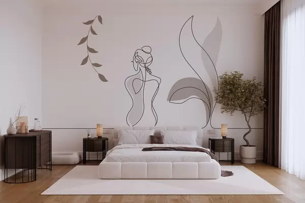 Wall Mural Photo Wallpaper linear silhouette of a woman and leaves Nr. w04303
