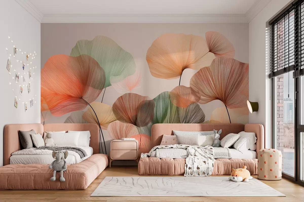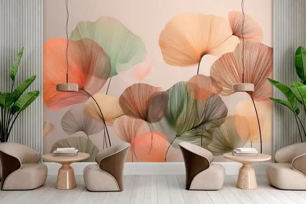 Wall Mural Photo Wallpaper multicolored ginkgo leaves with veins Nr. w04305