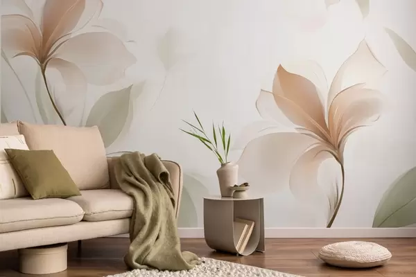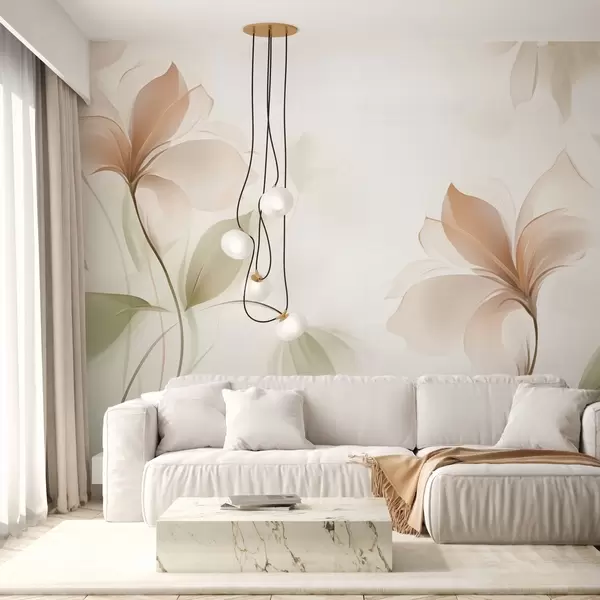 Wall Mural Photo Wallpaper Transparent flowers in warm beige and pink tones Nr. w04397
