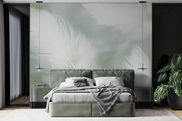 Wall Mural Photo Wallpaper Delicate white feathers on a soft mint background Nr. w04399