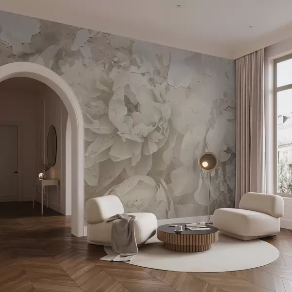 Wall Mural Photo Wallpaper Peonies with concrete texture Nr. w04407