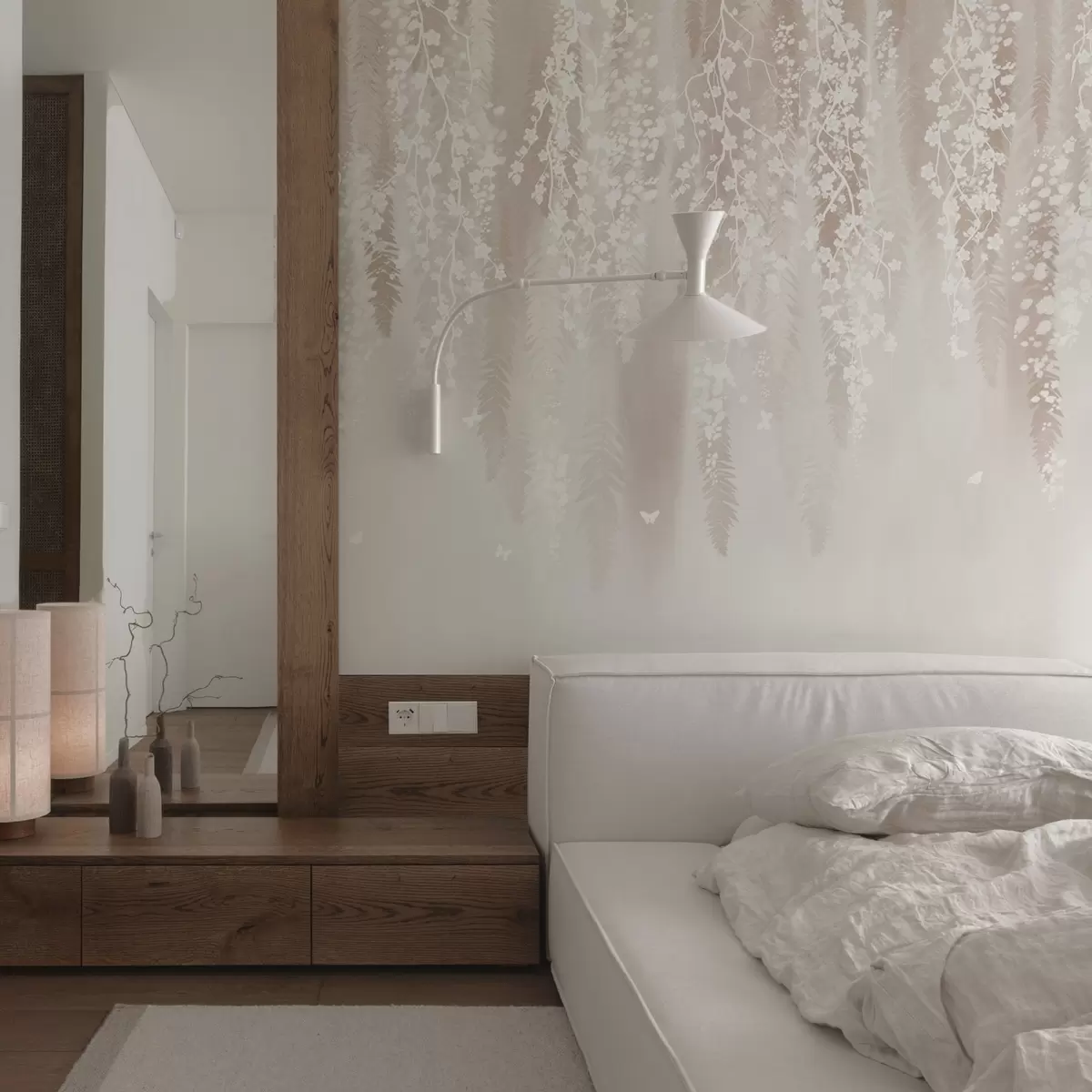 Wall Mural Photo Wallpaper Light branches with white flowers on a gentle background Nr. w04417