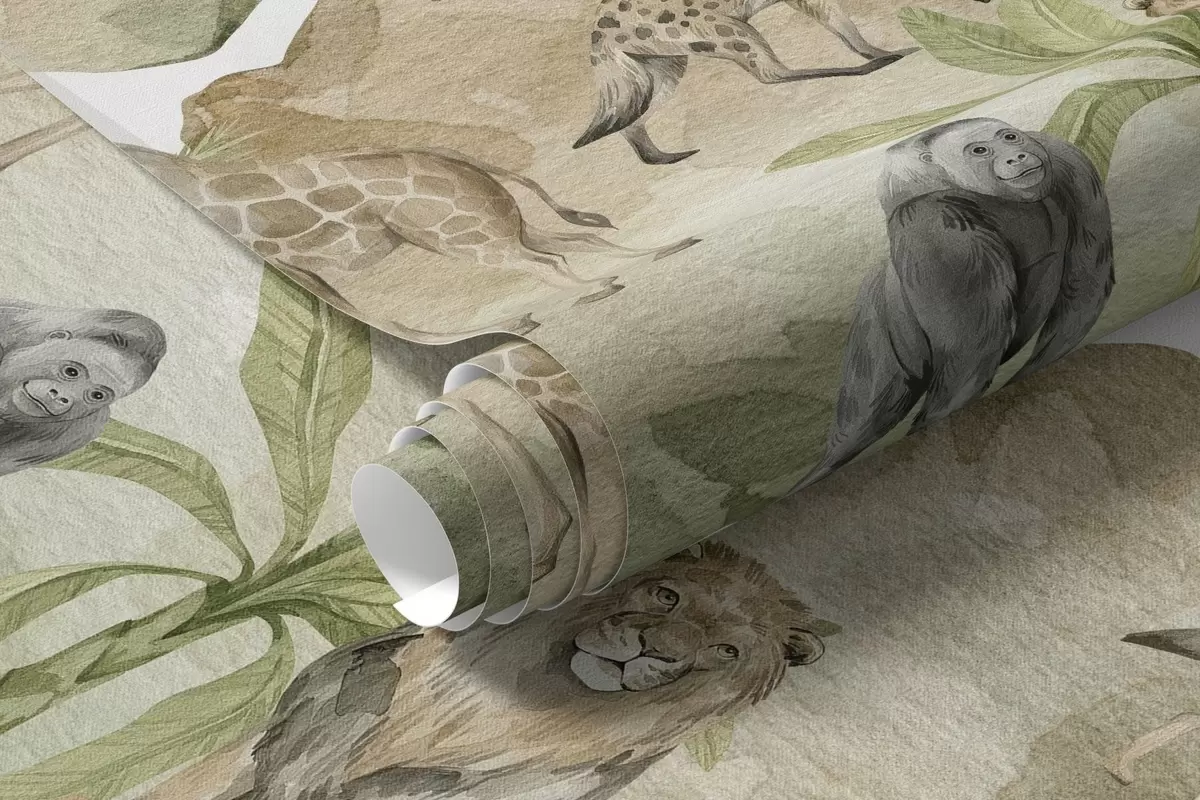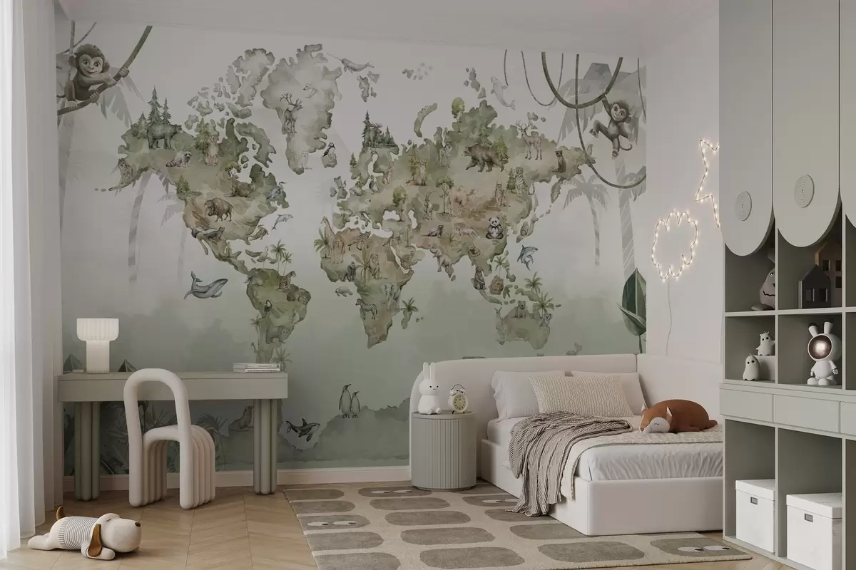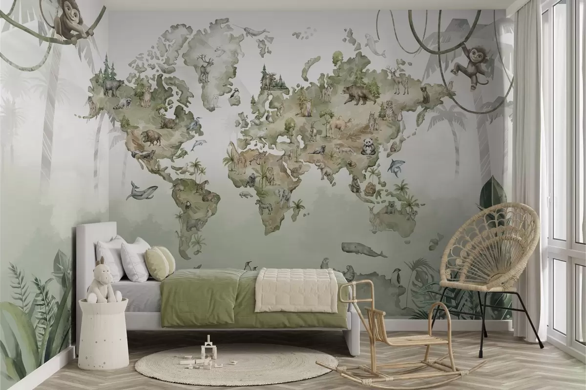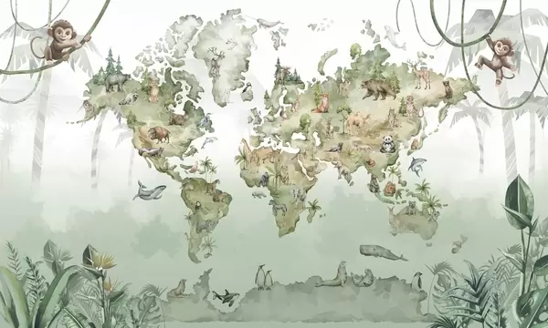 Wall Mural Photo Wallpaper Illustrated world map with animals and jungles Nr. w04418v1